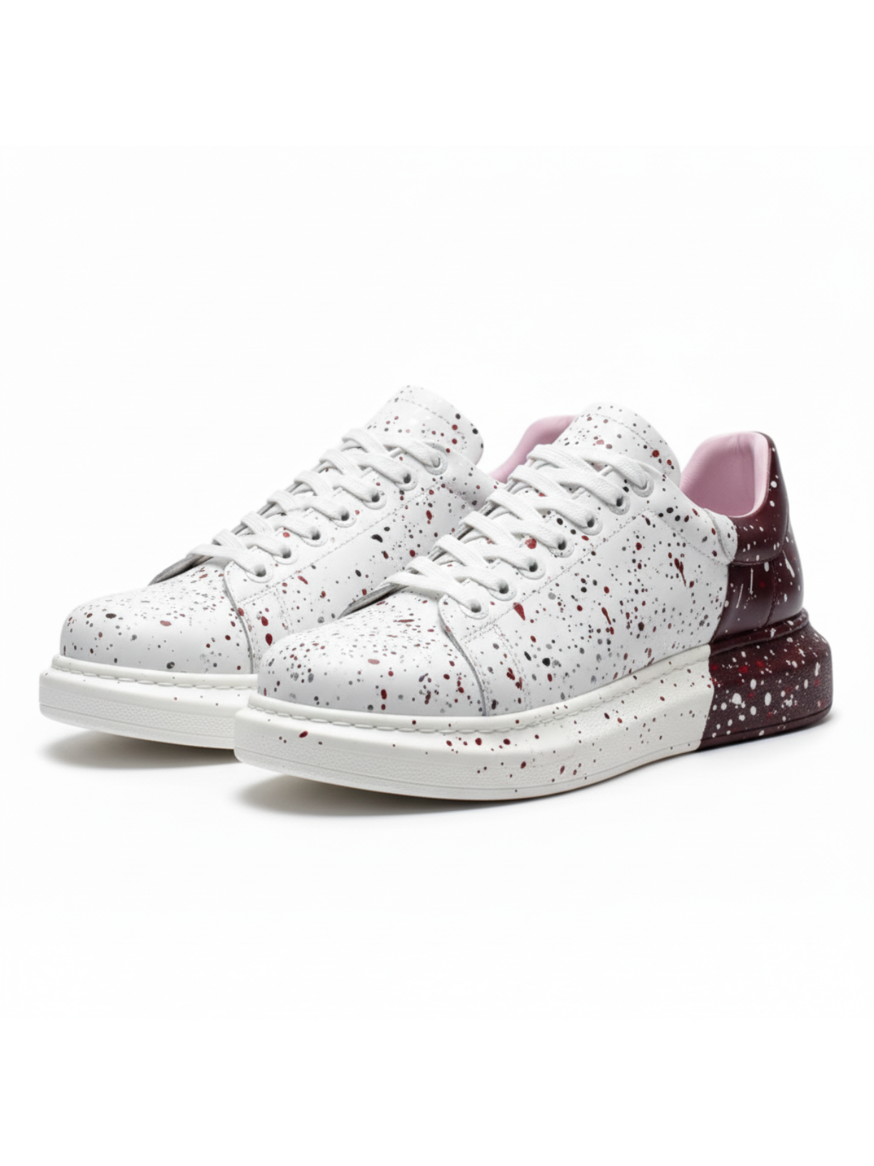 Color Wave custom sneakers are hand-painted and made to order, with every pair finished by artists for a completely unique look. Crafted from recycled materials that create a soft vegan leather feel, they feature a 1.5-inch hidden lift and cushioned insoles for all-day comfort. Due to their handcrafted nature, delivery may take longer than standard shipping times depending on order volume.