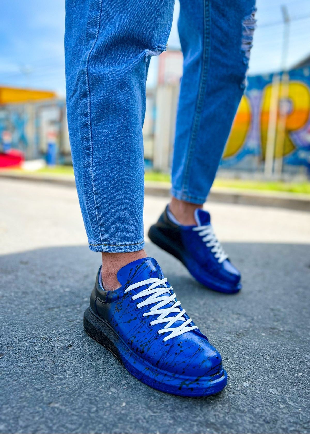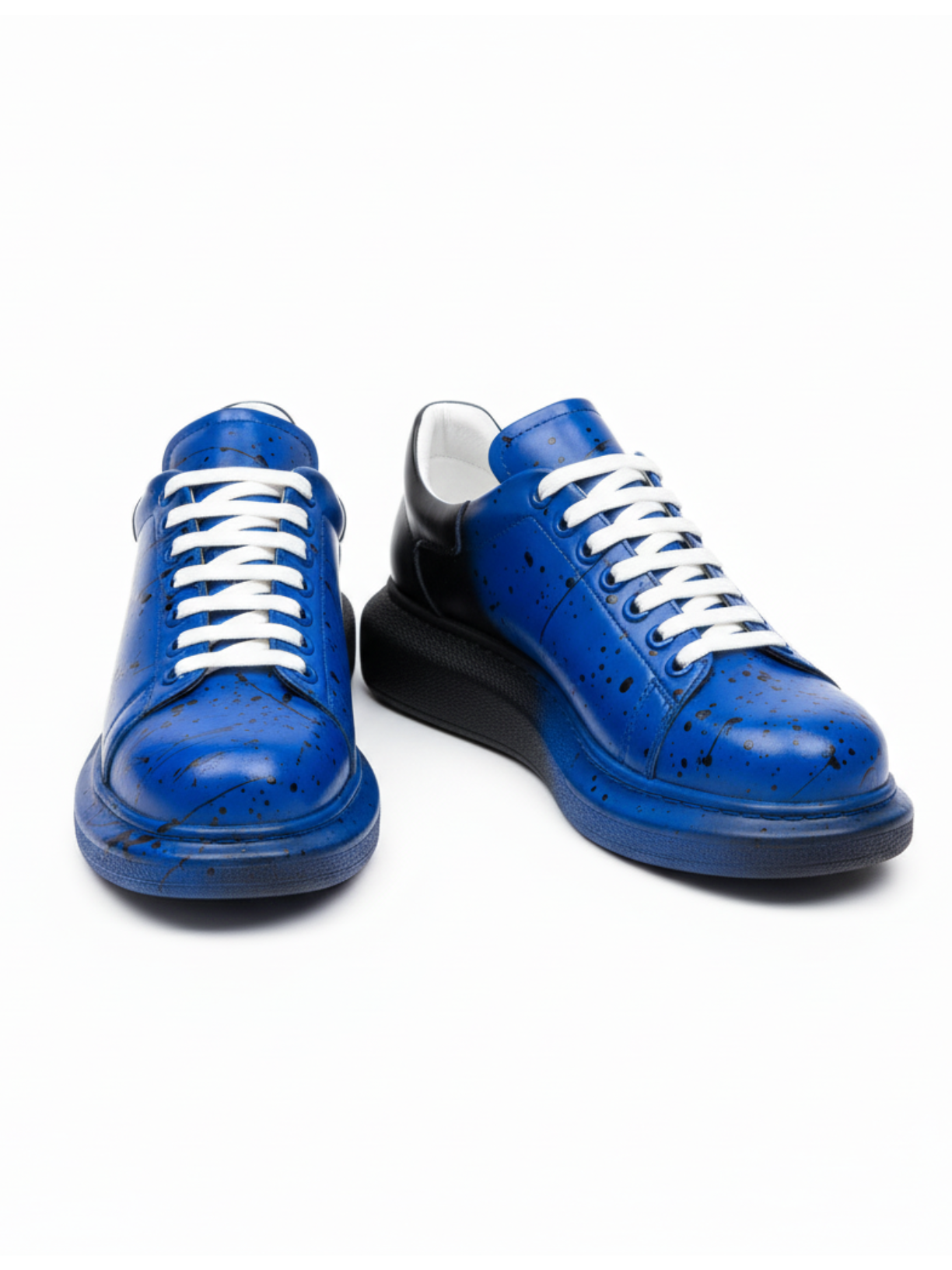 Color Wave custom sneakers are hand-painted and made to order, with every pair finished by artists for a completely unique look. Crafted from recycled materials that create a soft vegan leather feel, they feature a 1.5-inch hidden lift and cushioned insoles for all-day comfort. Due to their handcrafted nature, delivery may take longer than standard shipping times depending on order volume.