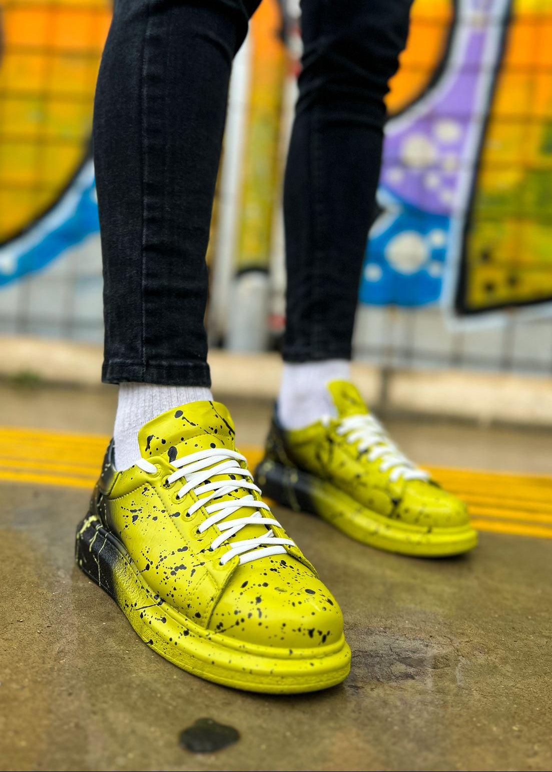 Color Wave custom sneakers are hand-painted and made to order, with every pair finished by artists for a completely unique look. Crafted from recycled materials that create a soft vegan leather feel, they feature a 1.5-inch hidden lift and cushioned insoles for all-day comfort. Due to their handcrafted nature, delivery may take longer than standard shipping times depending on order volume.
