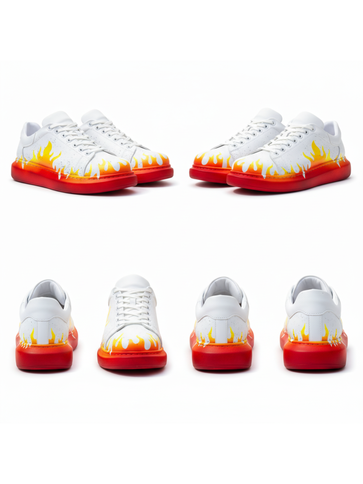 The Kinetic Vibe sneakers bring energy to every step with their signature flame hand-painted design. Crafted for both men and women, each pair combines bold artistry with comfort and confidence. Featuring a hidden height lift, cushioned support, and eye-catching colorways, Kinetic Vibe embodies modern streetwear with a fearless twist.