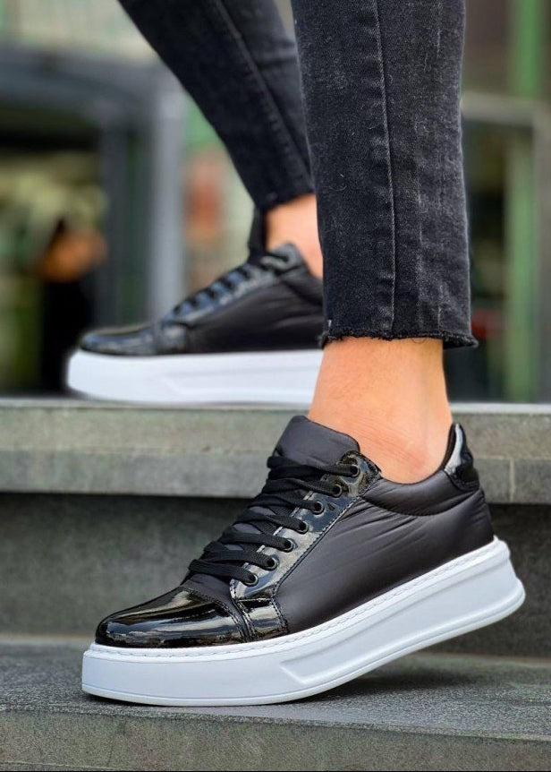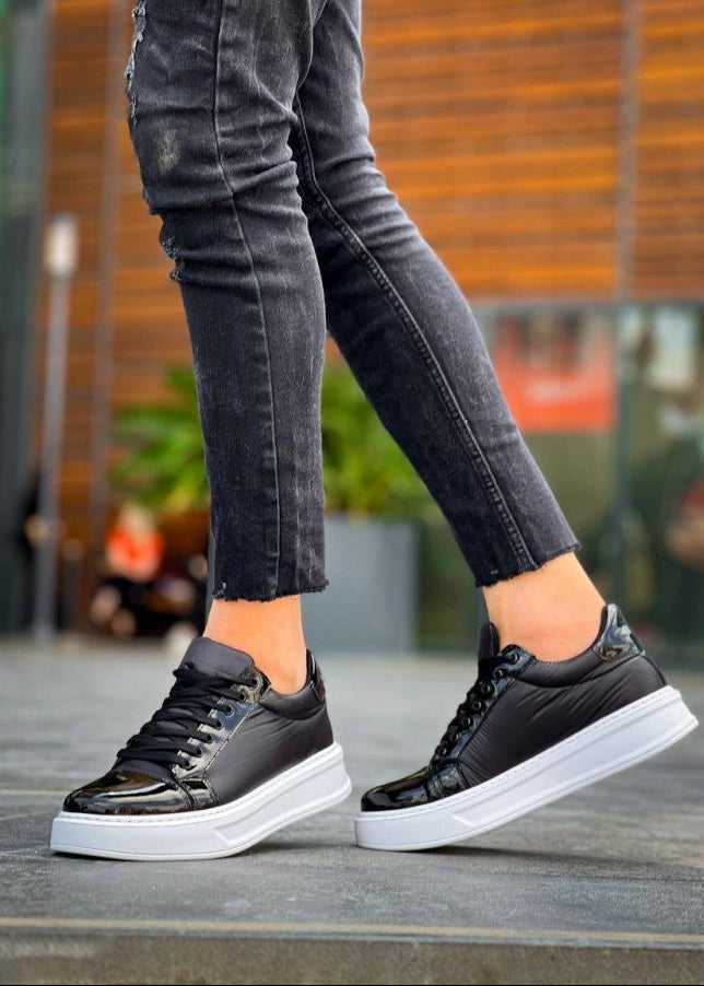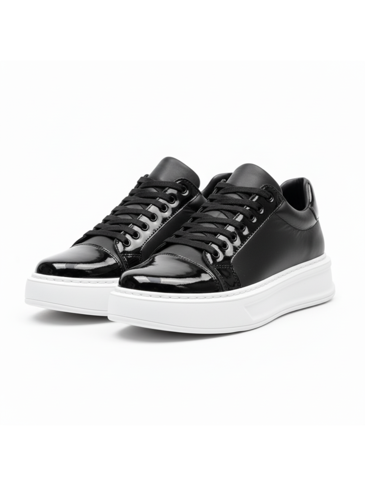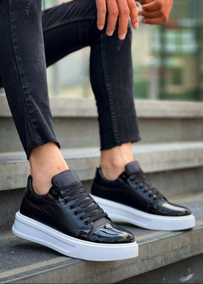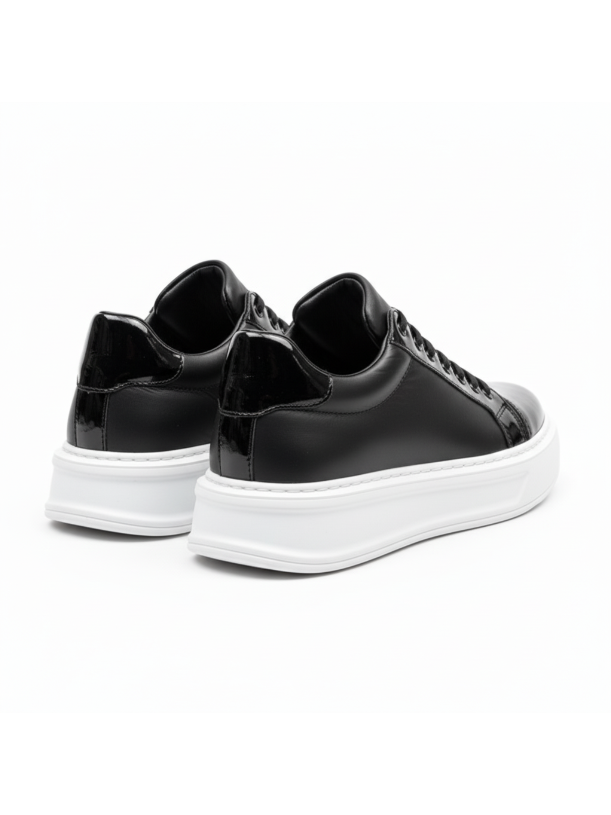 The Titan collection captures the fusion of bold streetwear and refined craftsmanship. With its mix of technical fabric and vegan leather, sleek color blocking, and height-boosting sole, Helios delivers confidence, energy, and comfort in one statement silhouette. Perfect for those who want to stand out with sophistication in every step.