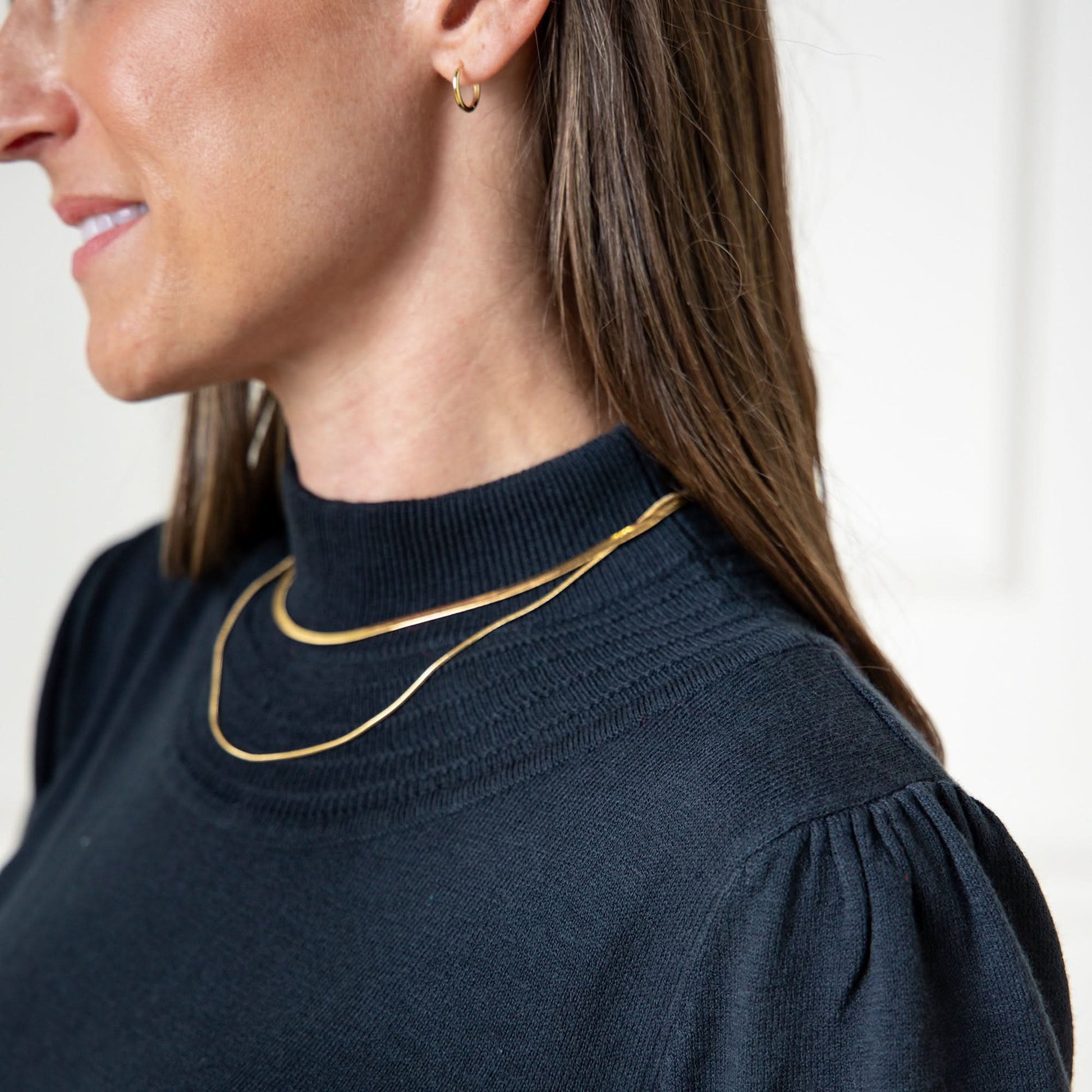 The epitome of effortless chic. Our sophisticated sweater dress in soft organic cotton exudes timeless charm. Features a super flattering shape, a mock neck, and romantic belled sleeves. A special stitch surrounds the neckline and cuffs for that extra touch.