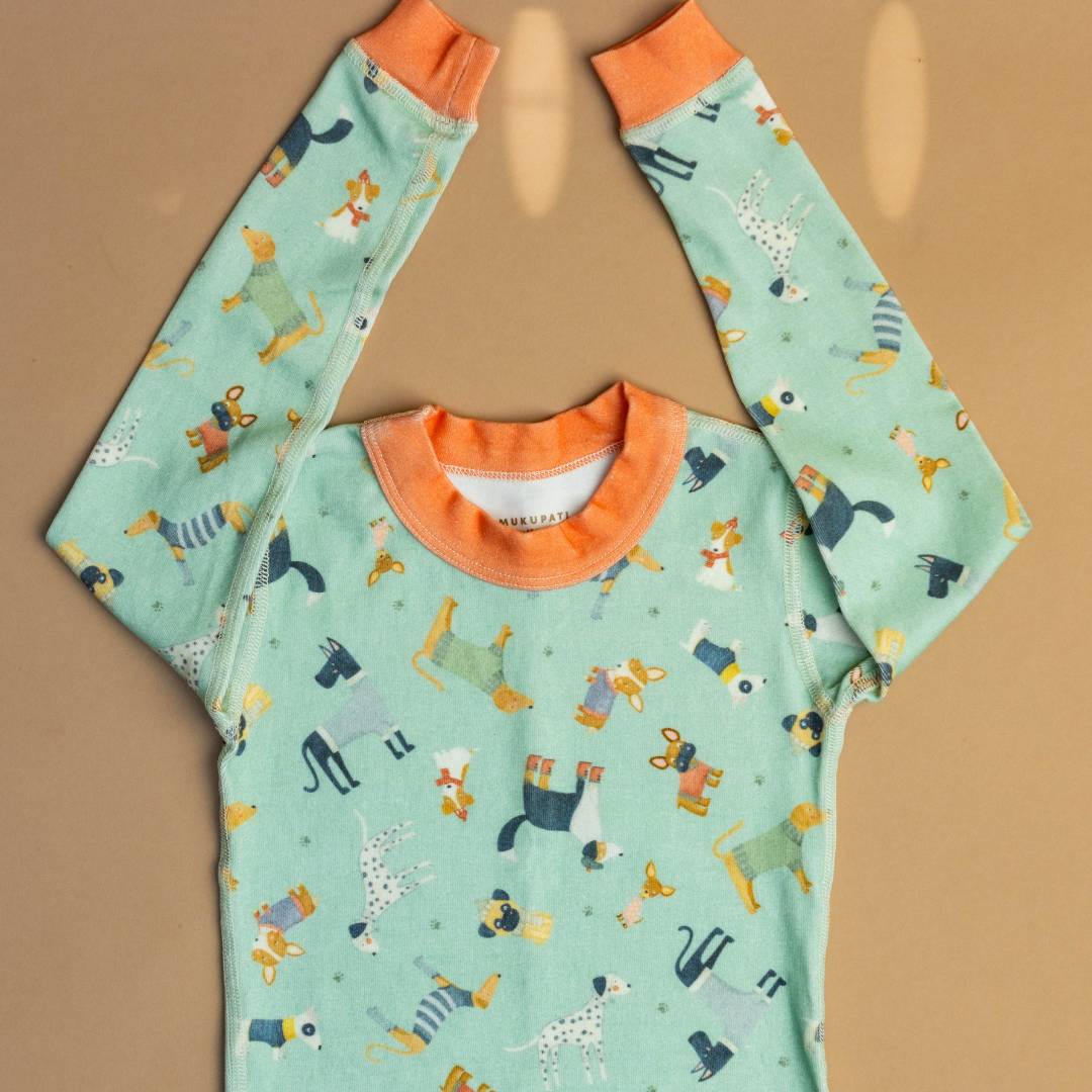 Mukupati pajamas are thoughtfully designed and ethically made, by women, with attention to detail and care for both your children and the environment. We are committed to sustainability and best practices to create a product that nurtures your child, the planet, and the communities involved in its production. (95% Organic Cotton milled in the USA, 5% Elastane)