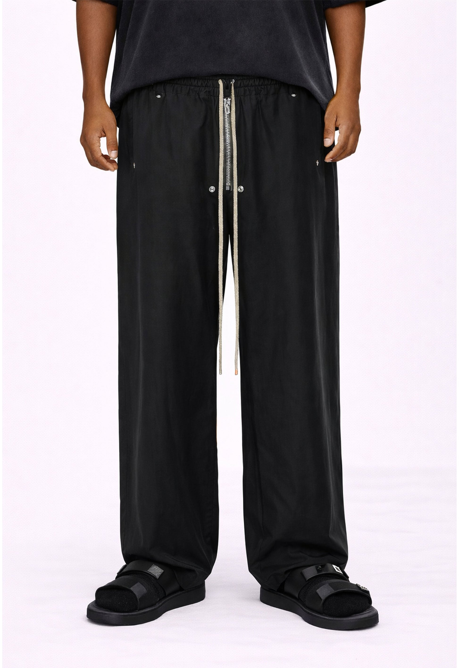Our Noir Rapture Pants are designed with a relaxed fit, featuring lightweight nylon fabric with multi functional cargo pockets, rivet accents, and an elongated drawstring