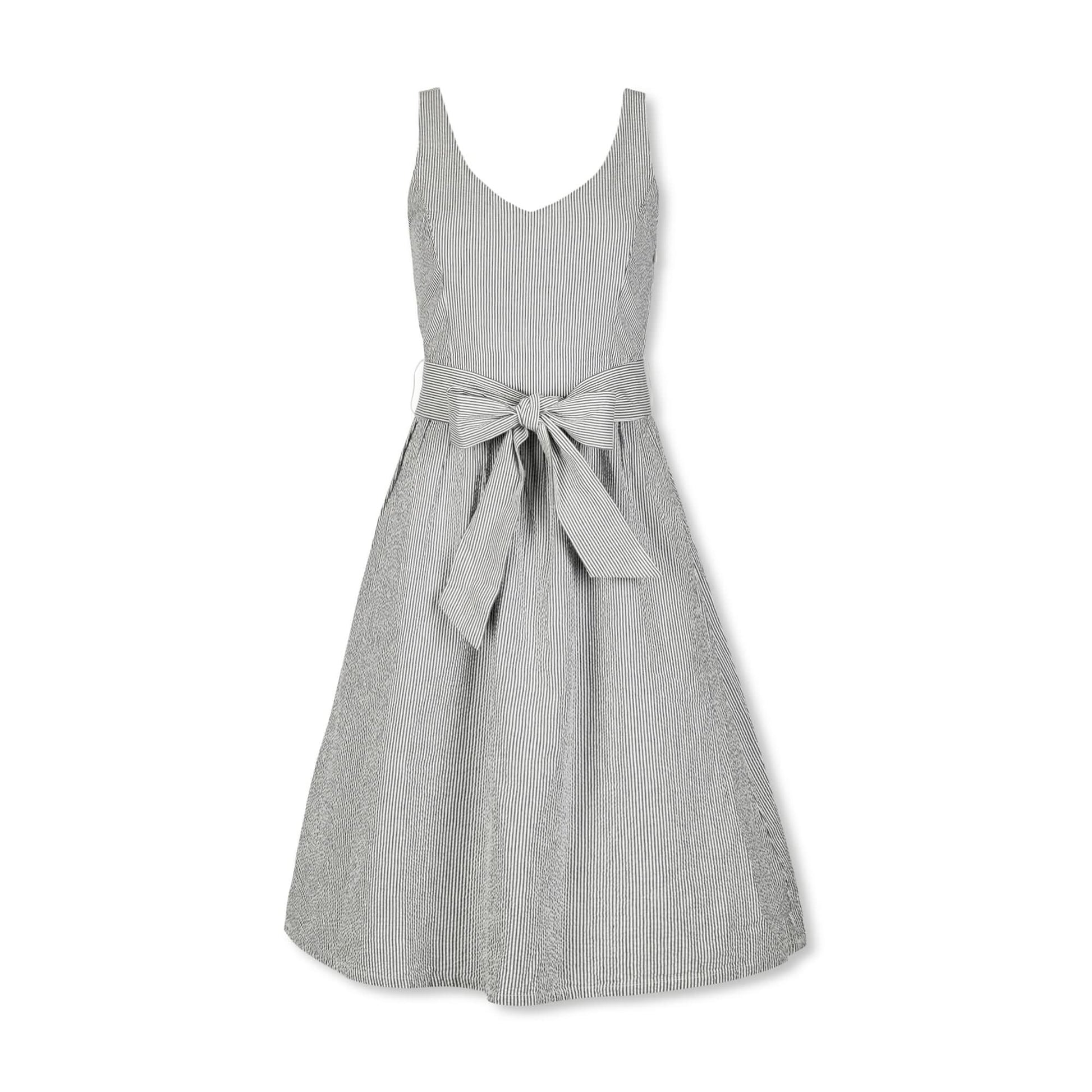 Strike a stunning silhouette in our classic sleeveless a-line dress with waist sash. Features a flattering cut with princess seams, hidden side zipper, waist sash, and elastic inside the back waistband for a comfortable fit. Fully lined in soft organic cotton batiste. A beautiful light weight dress for all occasions!