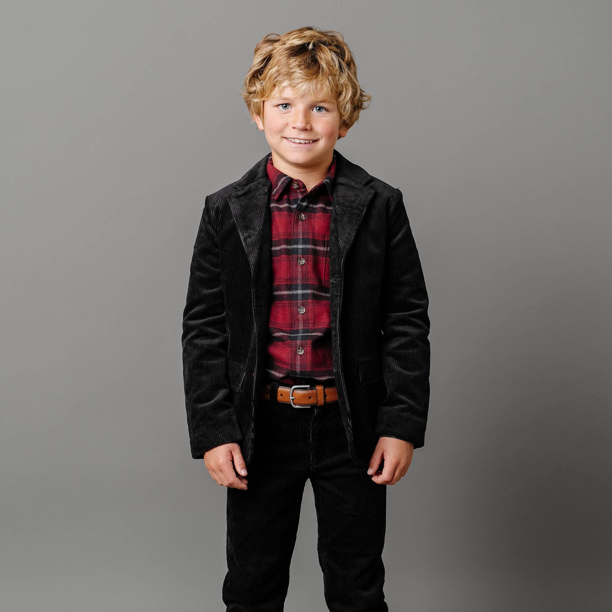 Your boy will never look better than he does in our classic corduroy blazer. Just as perfect for picture time as it is for play time, our soft organic cotton jacket features button details, faux suede elbow patches, and decorative pockets at the front. Keep it casual or dress it up with our matching corduroy trousers.