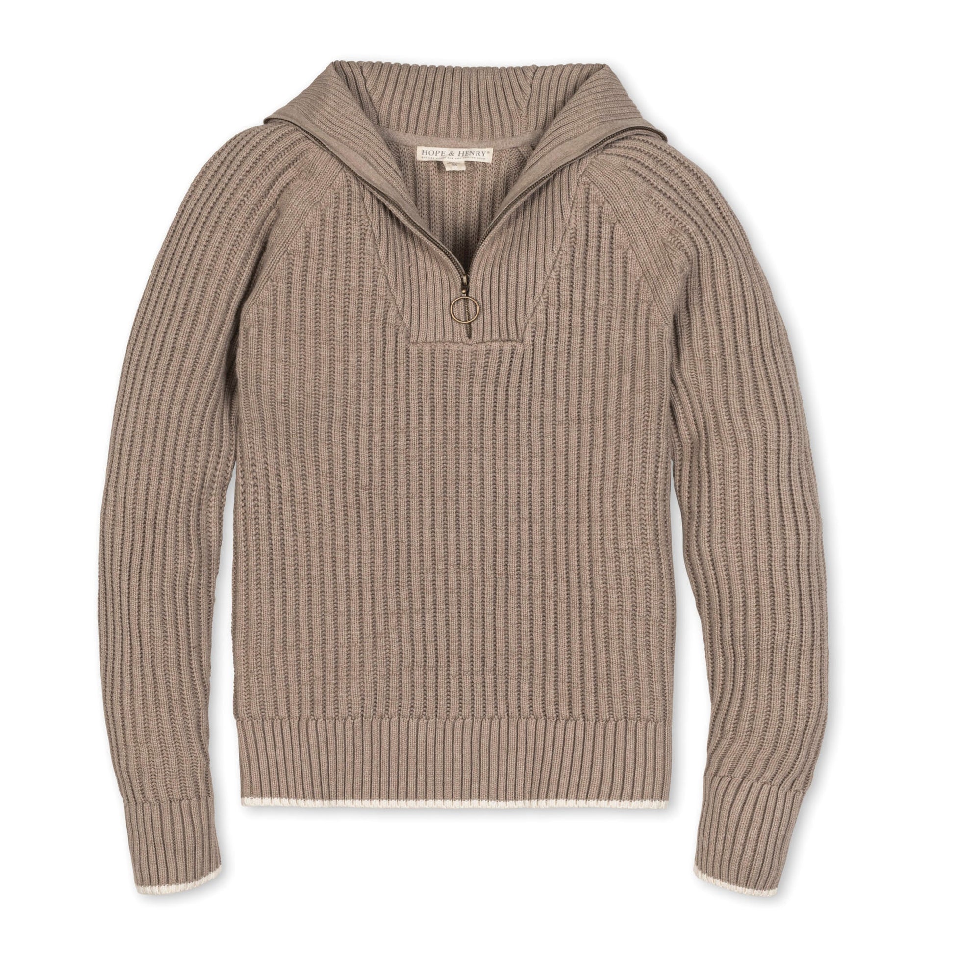 You’ll want to wear this irresistibly cozy sweater all season long — the lofty cardigan stitch and casual cut are perfect for wrapping up in. Crafted from our soft organic cotton, this sweater features a rib knit mock neck that can be unzipped and folded over. The perfect piece for crisp fall mornings.