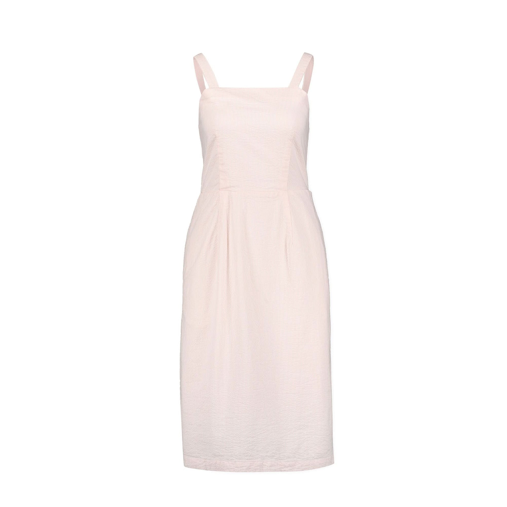 With a simple but flattering silhouette, our midi sheath dress can take you from the office to Sunday brunch in a breeze. Cut from our soft organic cotton seersucker, this lightweight dress features a slim cut with a smocked back bodice for comfortable fit. Fully lined in organic cotton. And did we mention, it has pockets?