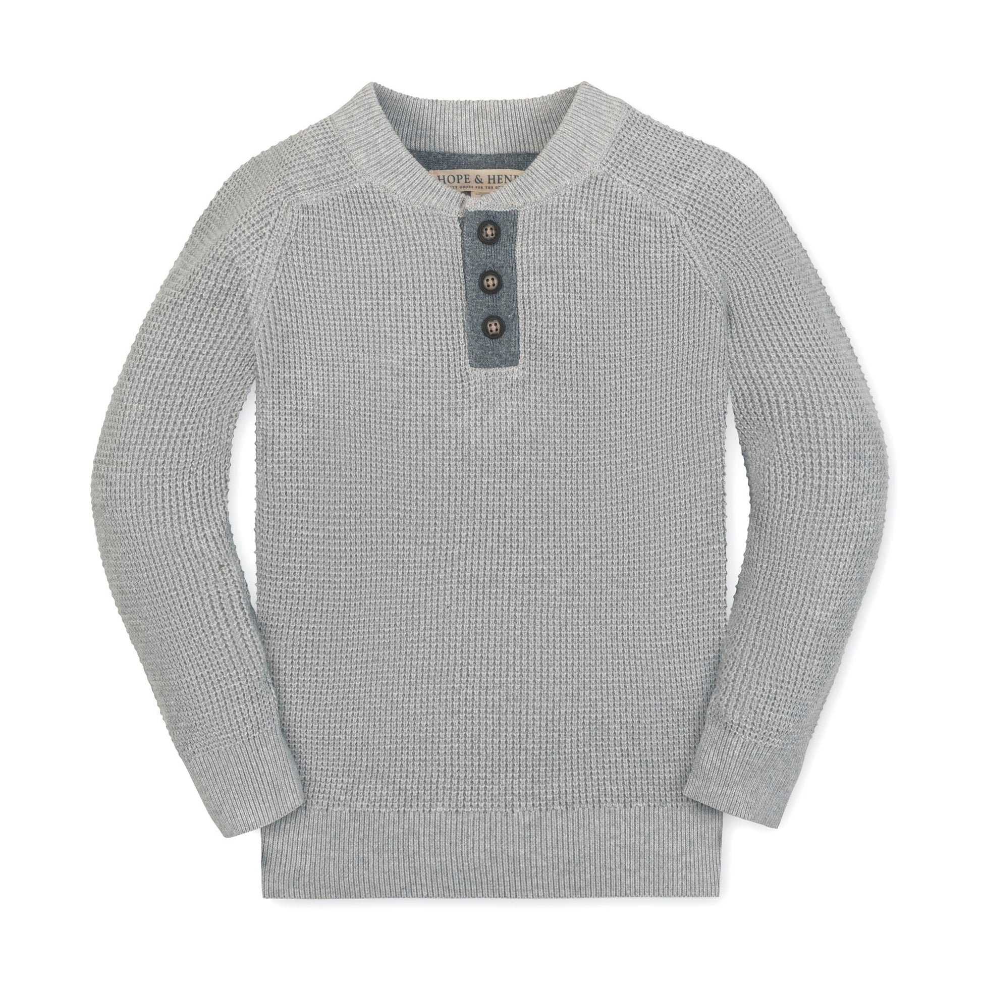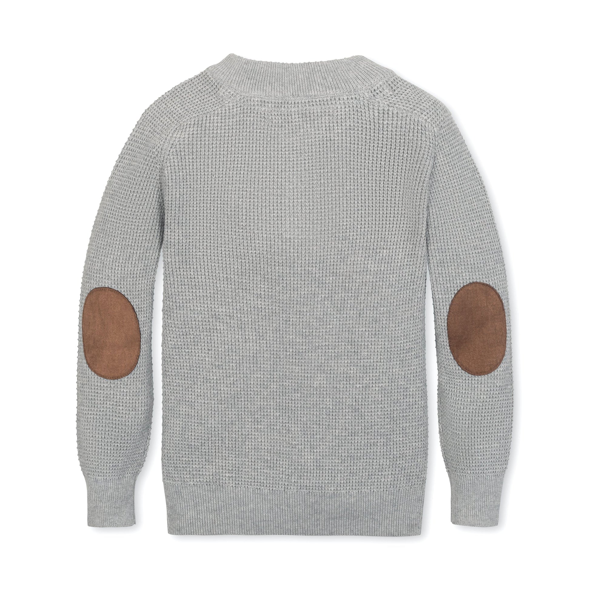 Our long sleeve sweater henley in soft organic cotton waffle knit combines the sporty look of a henley with the coziness of a sweater for the ultimate in comfort and style. Features faux suede elbow patches, button closure at the center front placket, and rib trim at the cuffs and collar. A sophisticated twist on a classic.