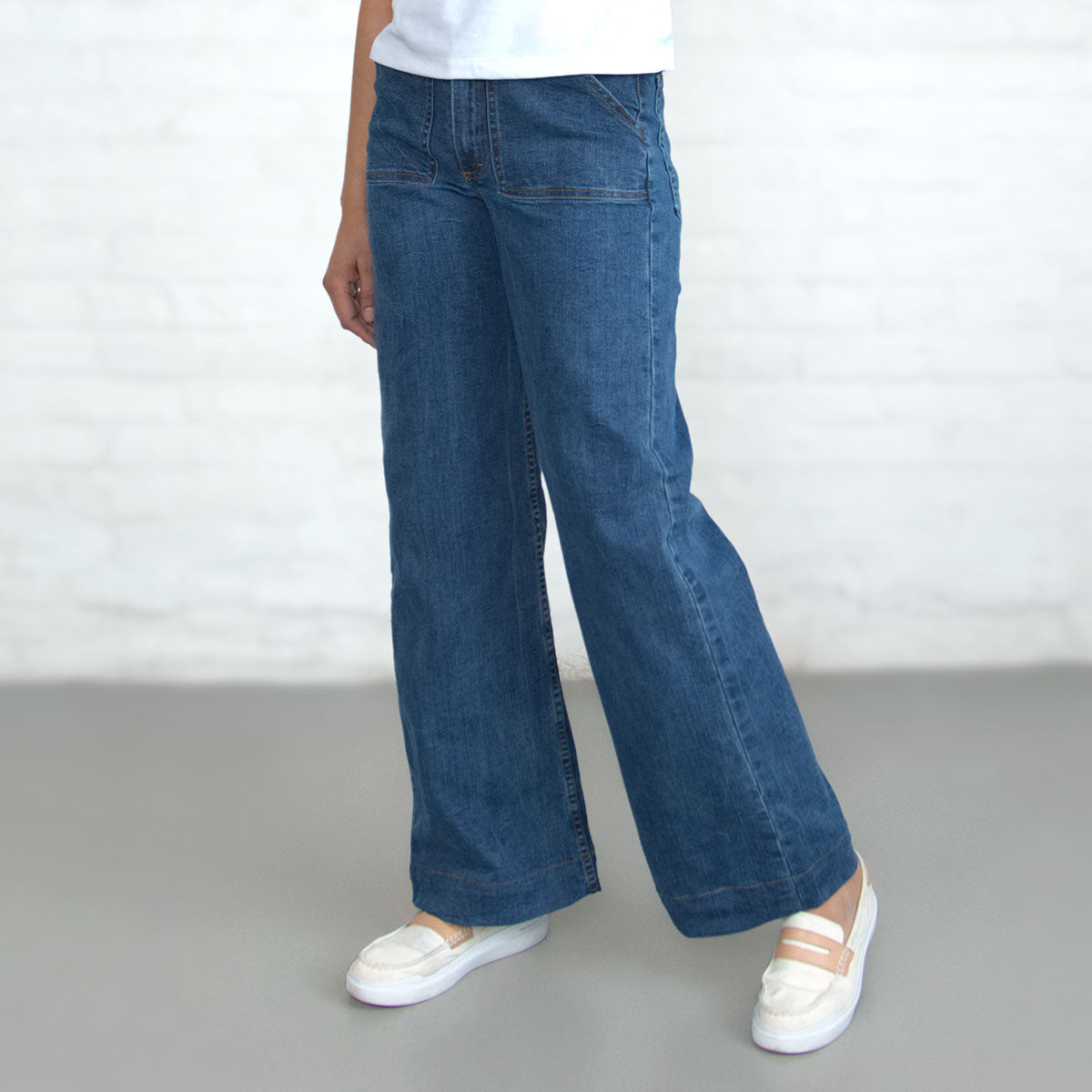 70’s style inspiration, a high-rise with a stylish and versatile wide-leg. Available in three lengths: (30) , (32) , (34)