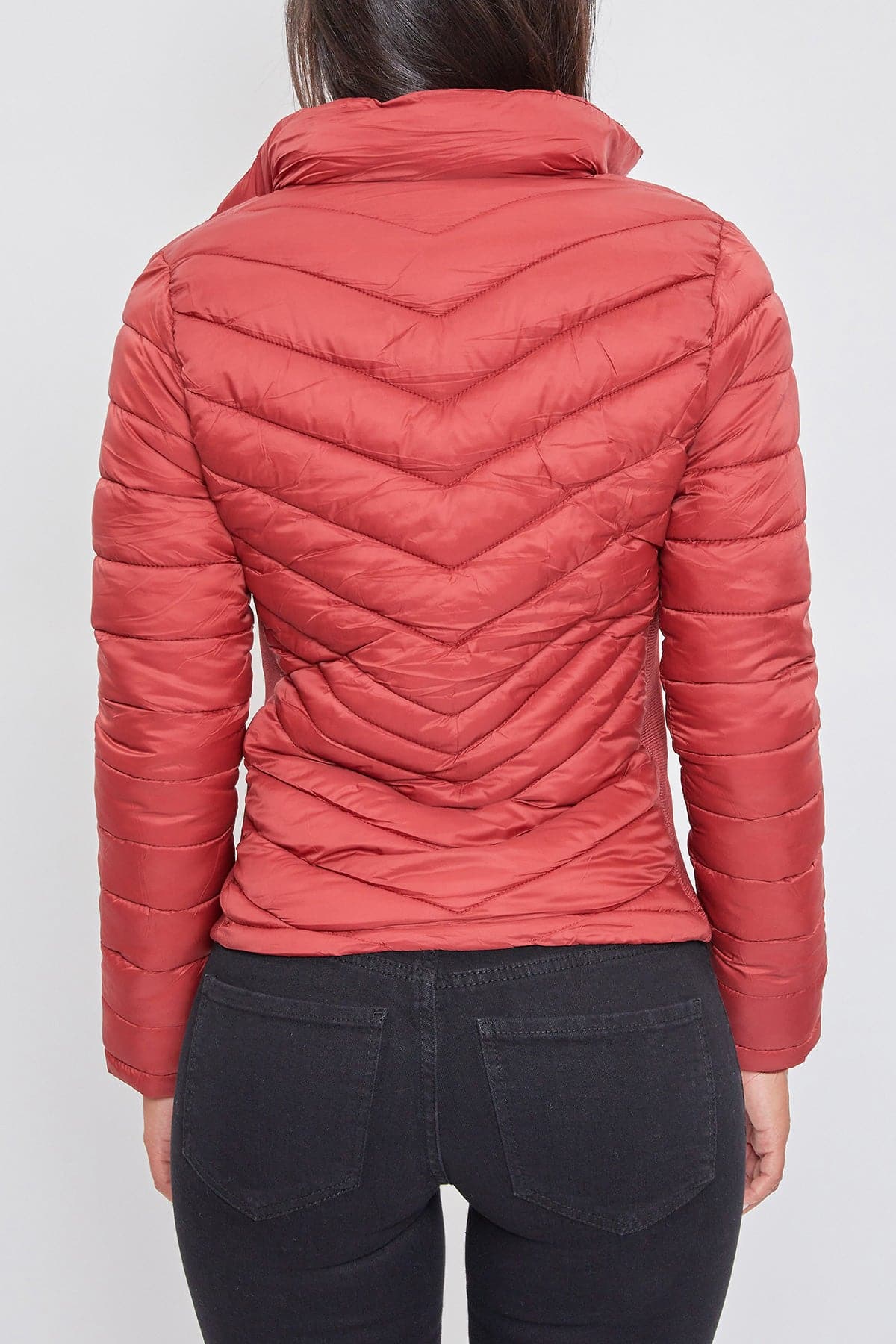 Our Women's Puffer Jacket With Detachable Sherpa Fur Hoodie features a removable faux sherpa fur-trimmed hood for versatile outfit options, elastic side insets for a shaping waistline, elastic cuffs, faux-fur super soft lining, zipper pockets on front, and a zipper front closure.