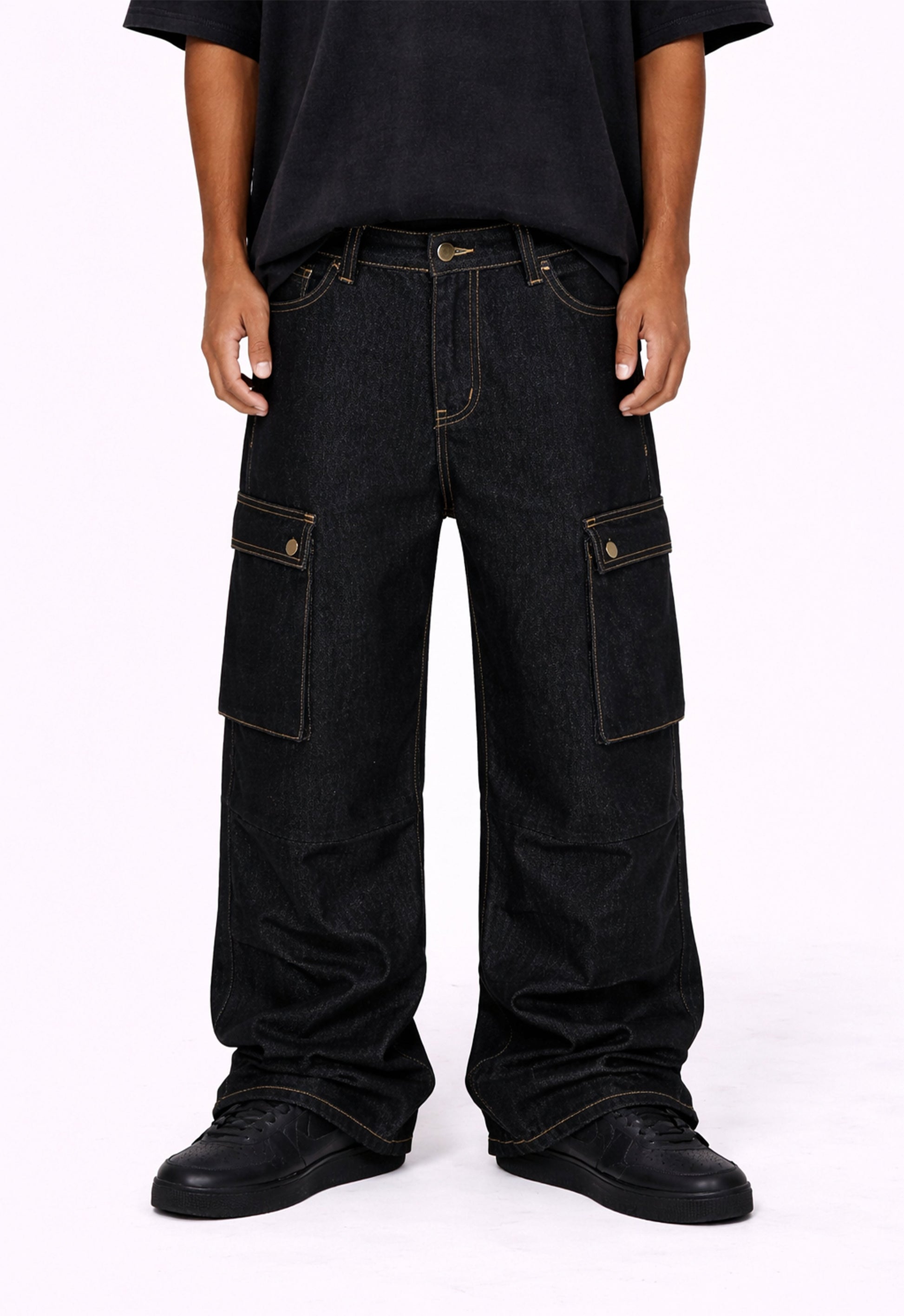 Our Raw Cargo Denim is constructed with a relaxed fit, featuring heavyweight raw denim, cargo pockets, and contrast stitching.