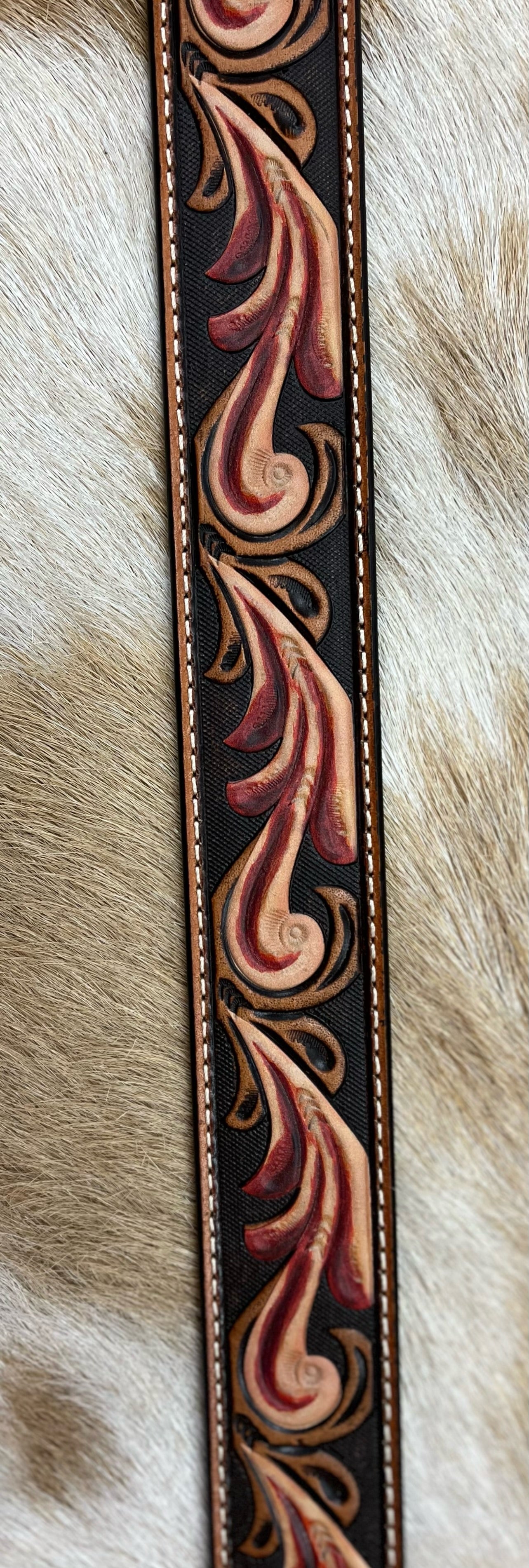 Ariat women's belt features a floral embossed pattern with red accent tooling.