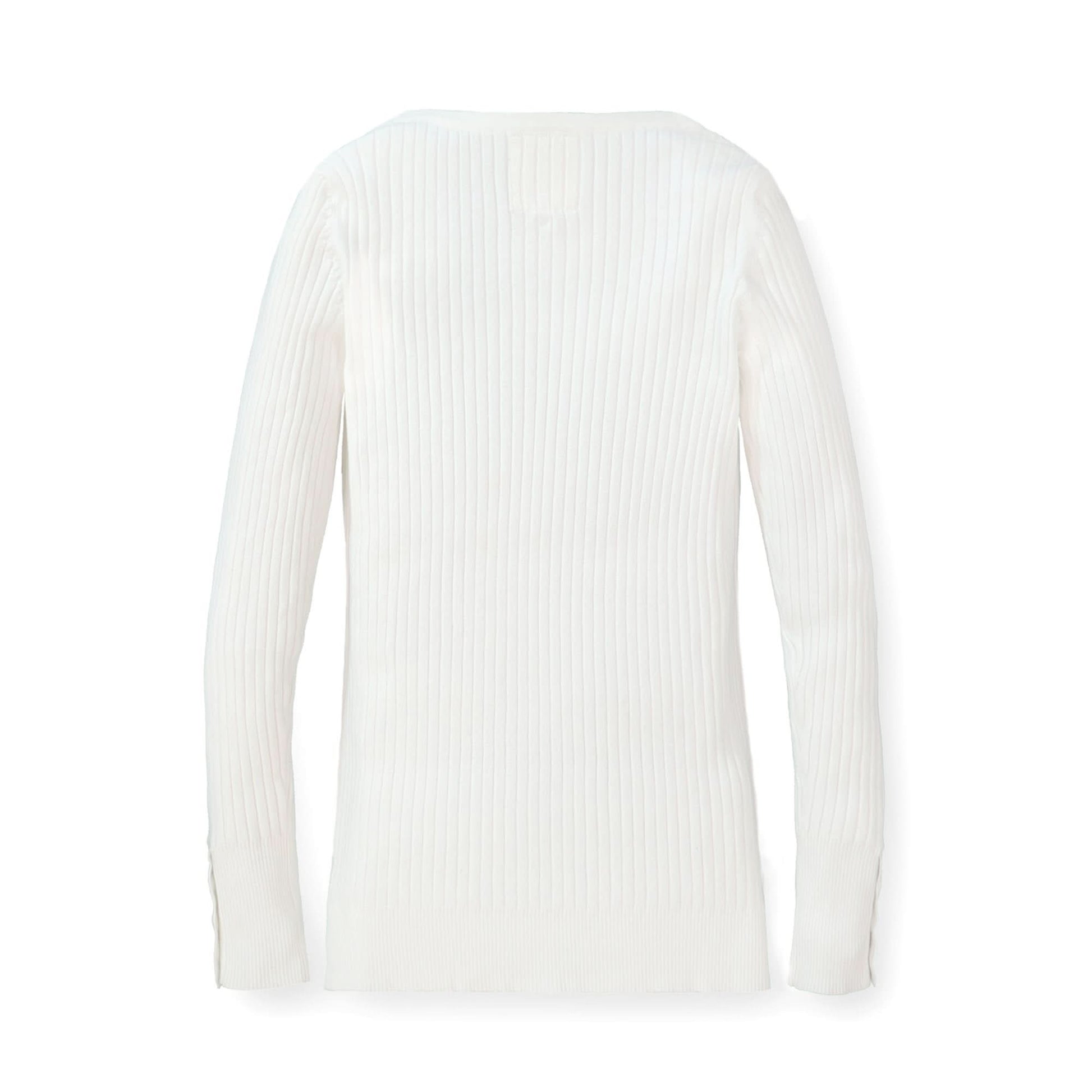 Our stretchy rib knit in an organic cotton blend perfects the flattering fit of this long-sleeve tee. Features a rounded neckline and buttons at the cuffs for a special touch.