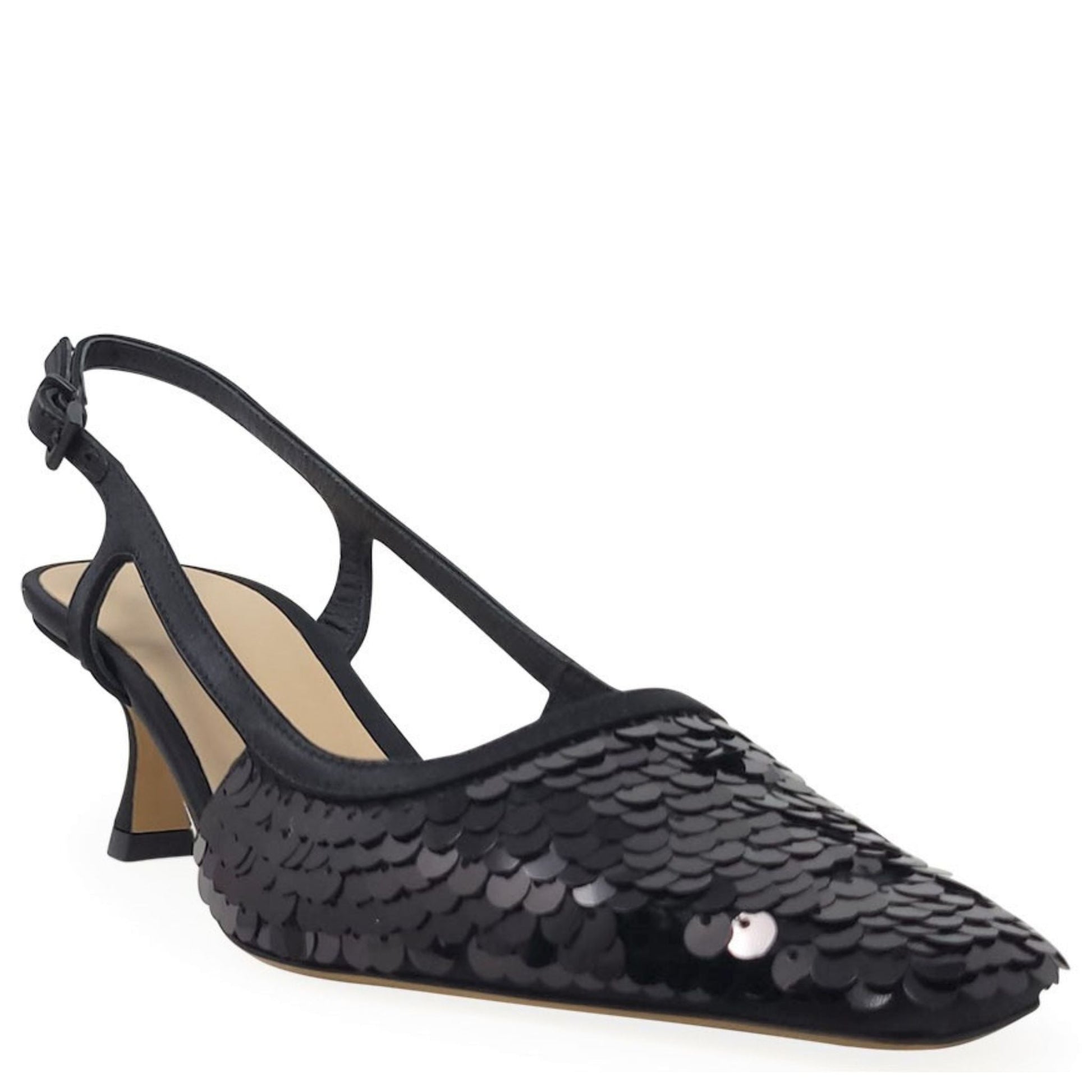 Roberto Festa Black Sequence Snip Toe Slingback Heel