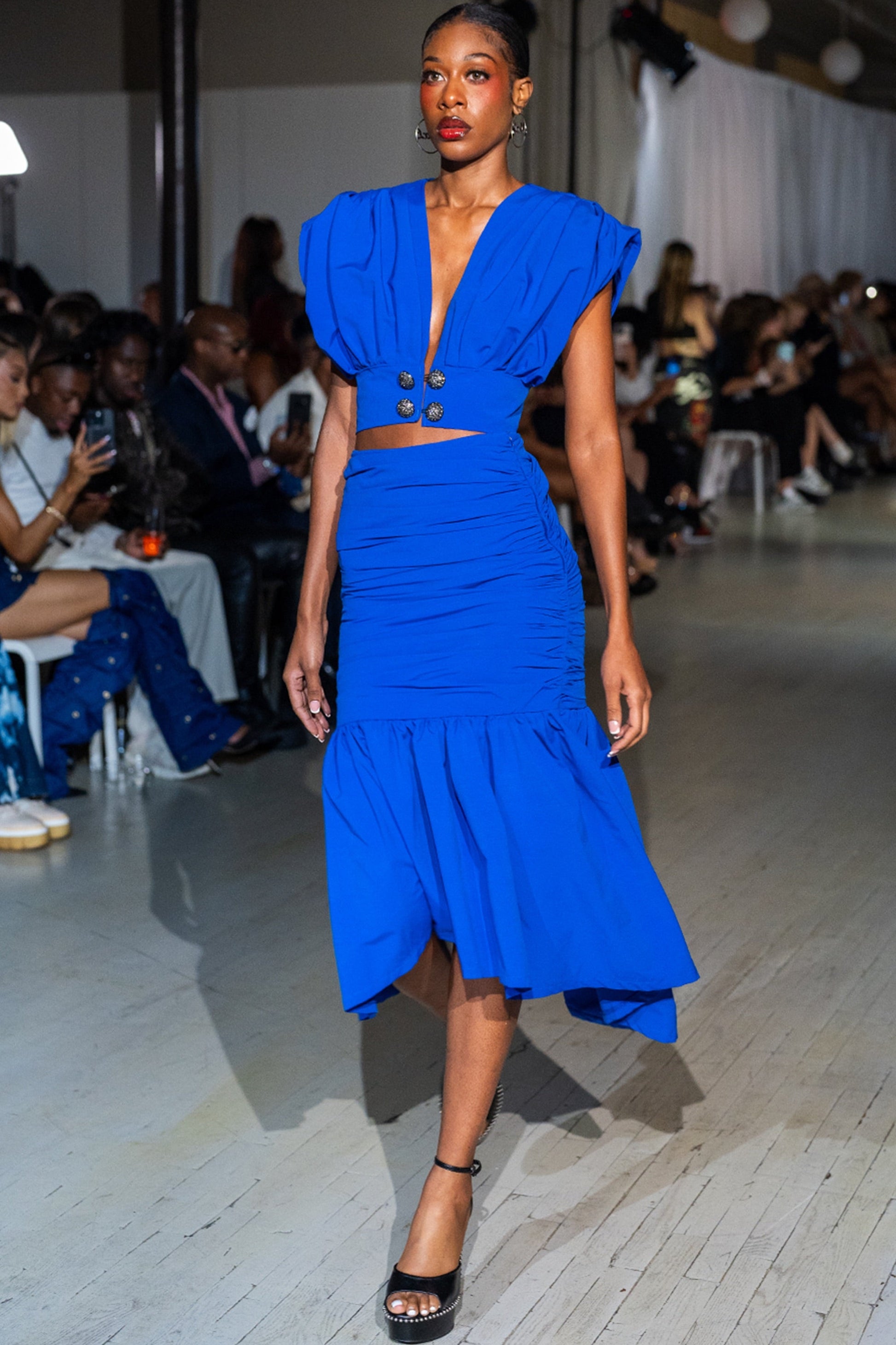 Perfect for evening events, editorial styling, or occasions where structured elegance meets high-impact presence.