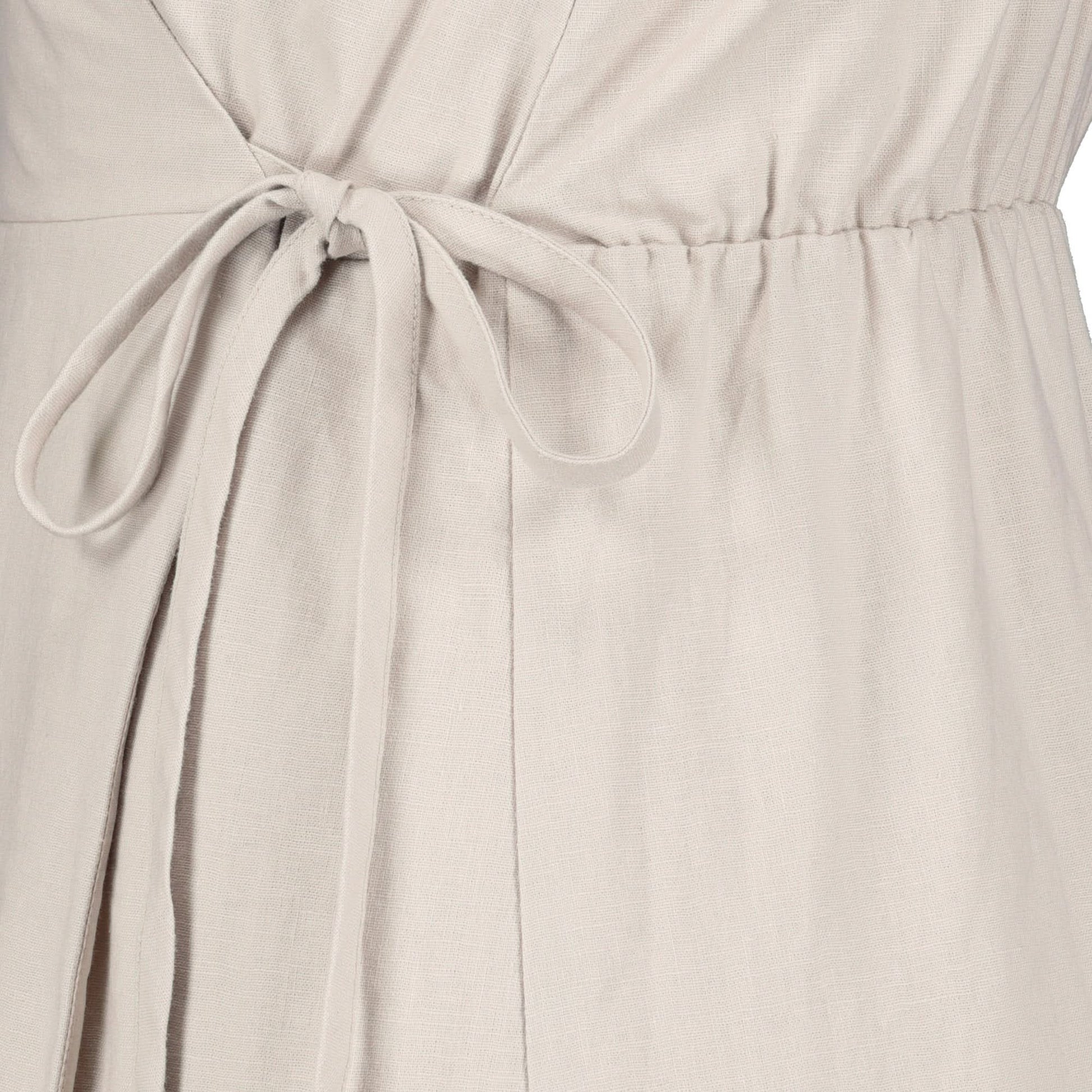 Our flattering midi wrap dress in a soft organic cotton and linen blend is a patio night must-have. Features a flattering wrap front with waist tie and a twirly skirt with a feminine ruffle hem. Lined in cotton. Wear with sandals by day or transition to evening with a denim jacket and booties!
