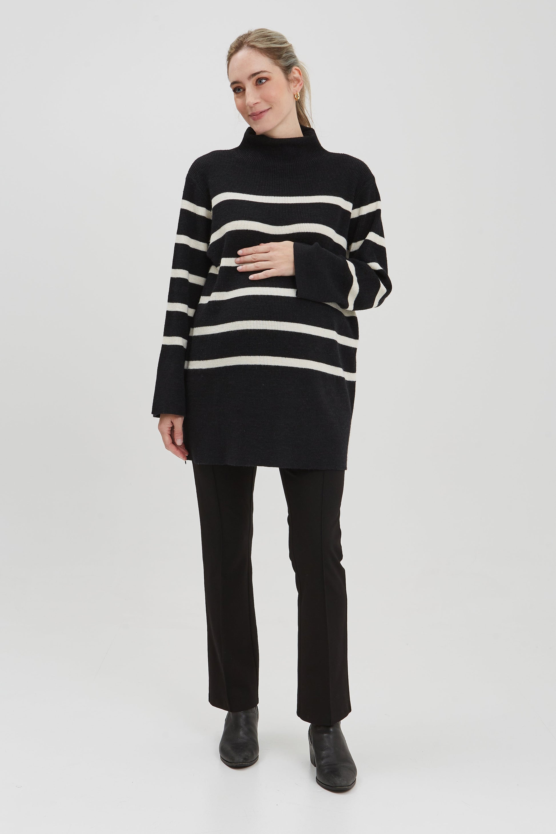 The perfect maternity + nursing layering piece. Designed in a wool blend with recycled polyester for a softer feel, the Sarabeth Sweater features hidden side zippers for easy nursing access, a slightly oversized fit to work with bump or post baby AND an on trend mock neck that has that perfect not to tight and not too loose look. This sweater is meant to be worn over (and over) well beyond nine months.