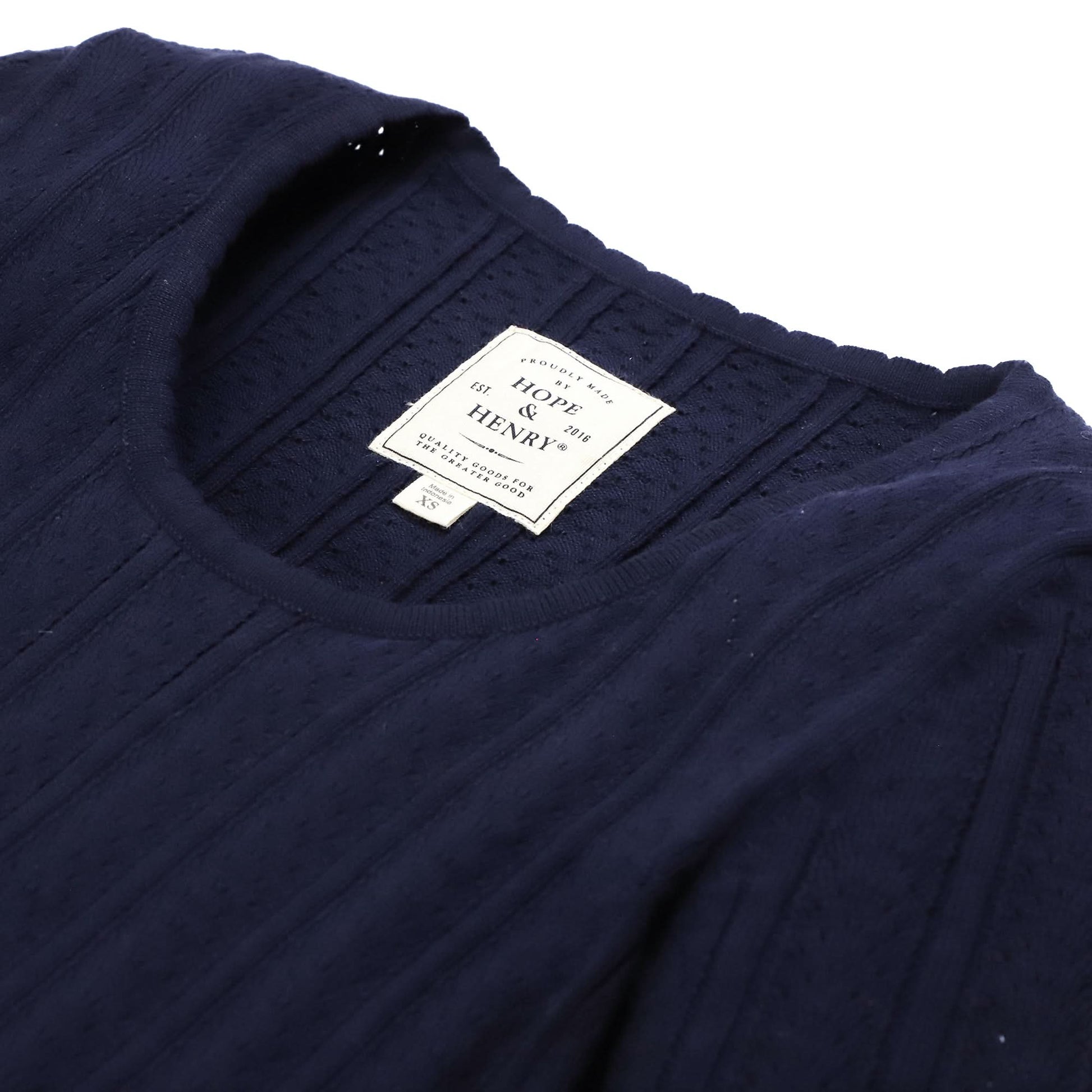 Our beautiful pointelle sweater top is made of super soft organic cotton with a touch of stretch that hugs you in all the right places. Features a flattering scoop neck, short sleeves, scallop detail trim, and a snug fit throughout. This classic sweater top looks great on its own or layered under your favorite cardigan!