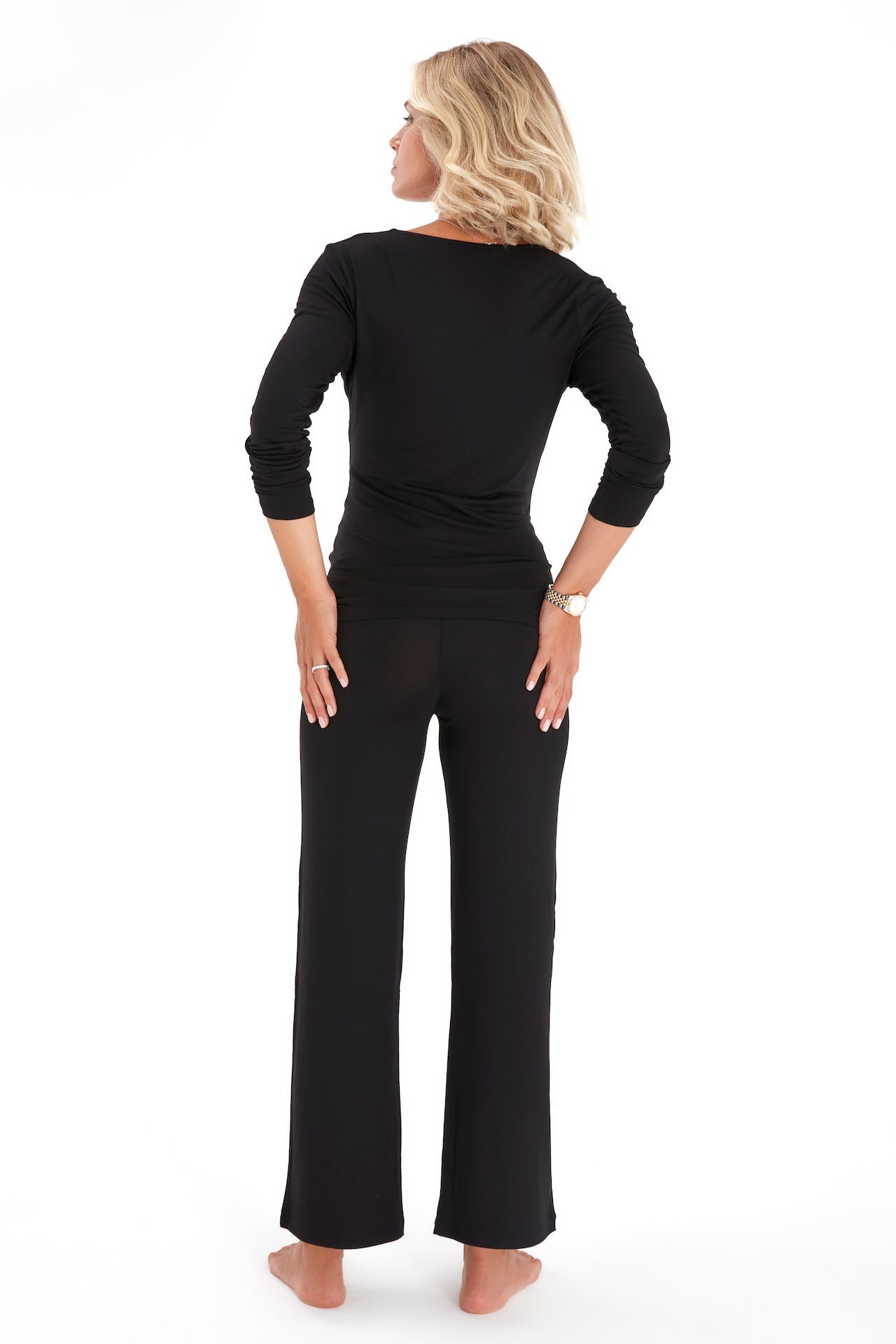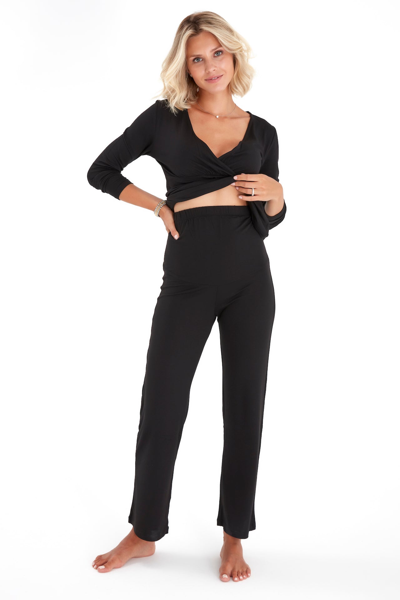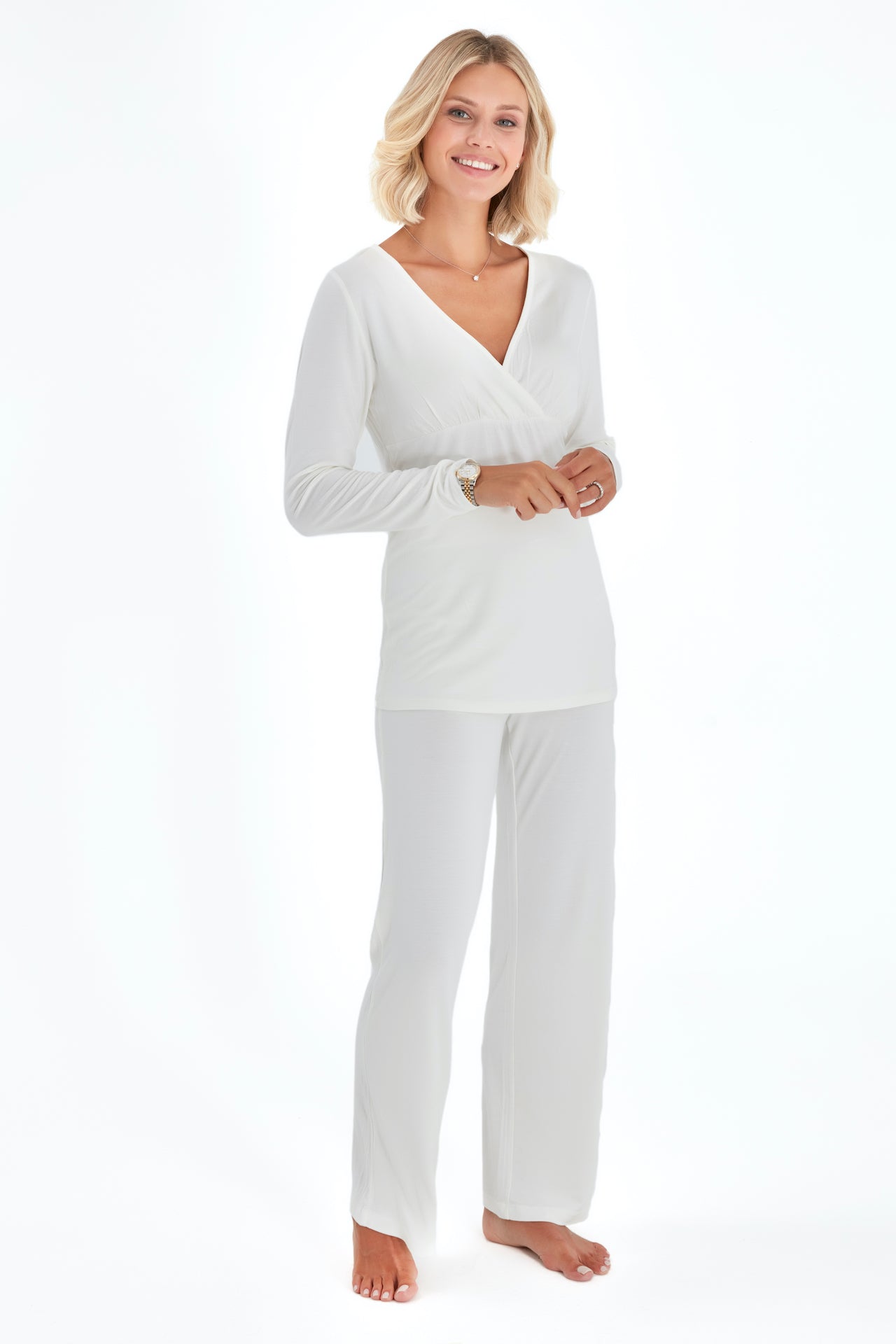 Stay comfy throughout the trimesters and beyond in these soft and stretchy pajamas featuring a nursing-friendly neckline on the top.