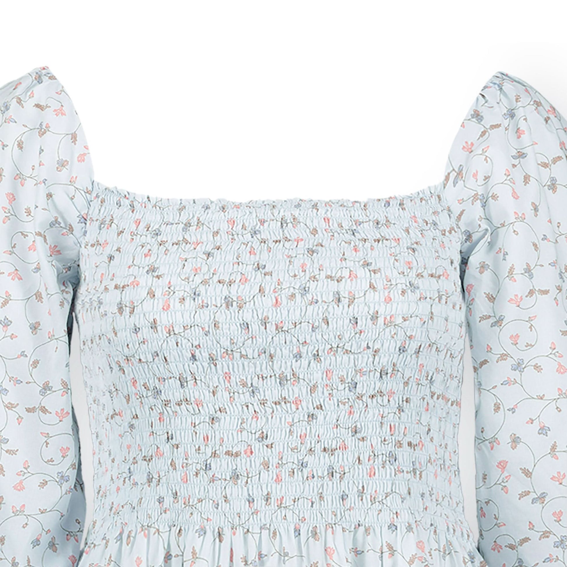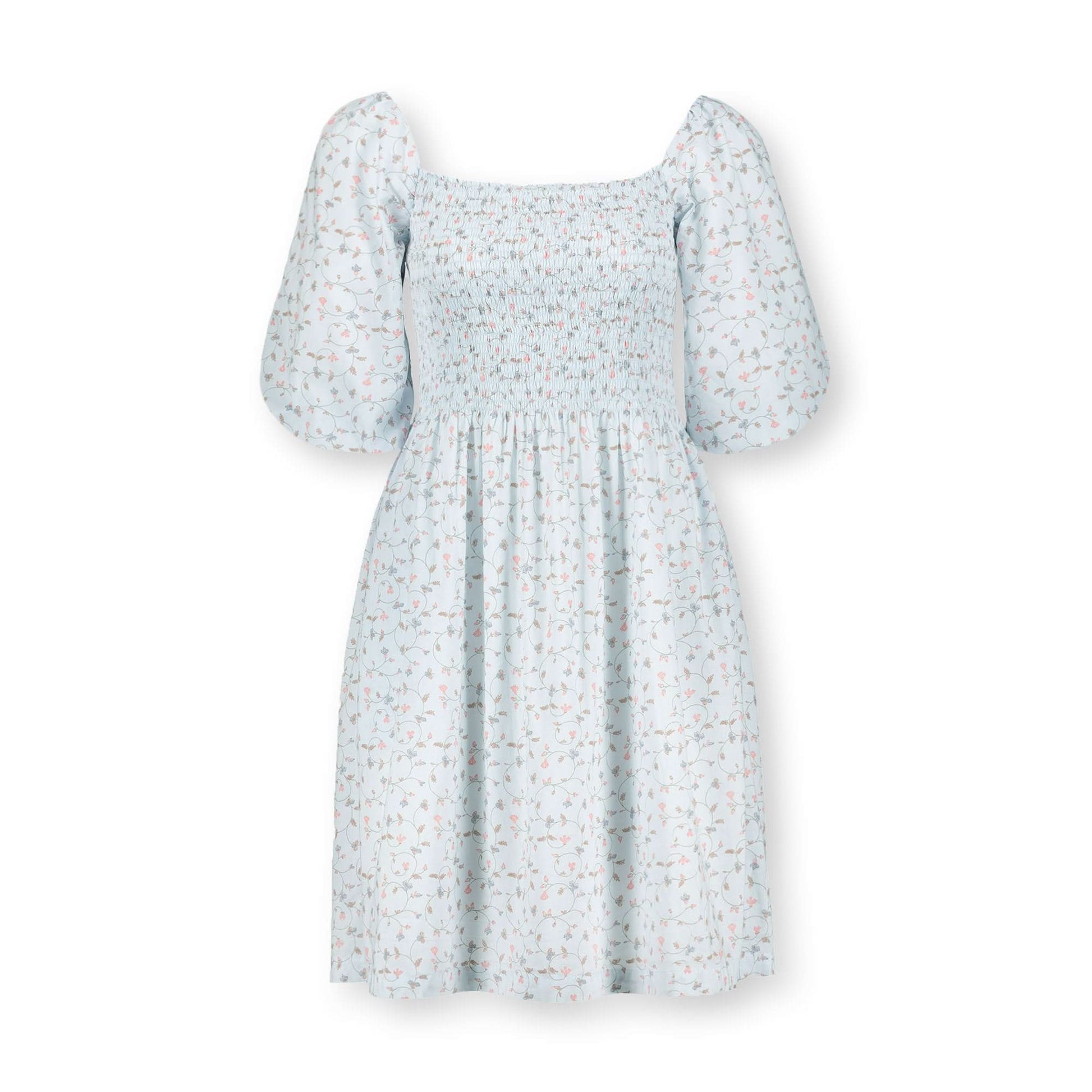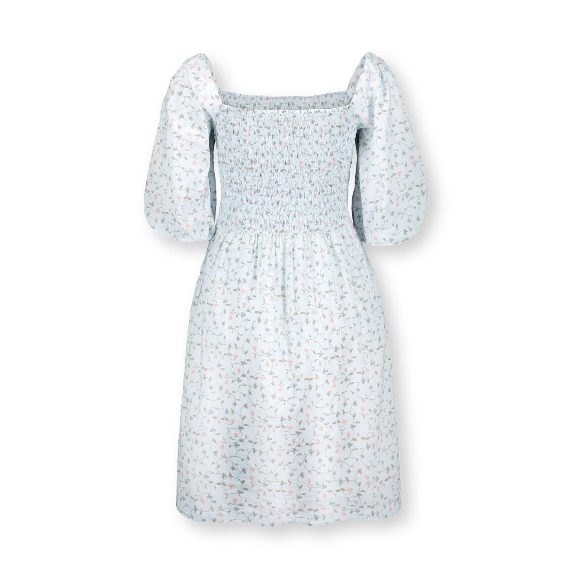 The prettiest way to be comfortable! Our beautiful floral print dress has elbow-length bubble sleeves and a stretchy and flattering smocked bodice. Cut in our soft organic cotton batiste, you'll want to wear this easy style all spring and summer long. Fully lined in organic cotton. And did we mention, it has pockets?