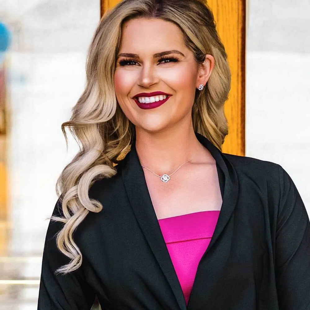 This crystal jewelry set features a stunning necklace and earrings. This set has a one of a kind design. A large oval shaped clear cubic zirconia crystal sits in the center of the design. The center crystal is surrounded by four interconnected circles of smaller clear cubic zirconia crystals.