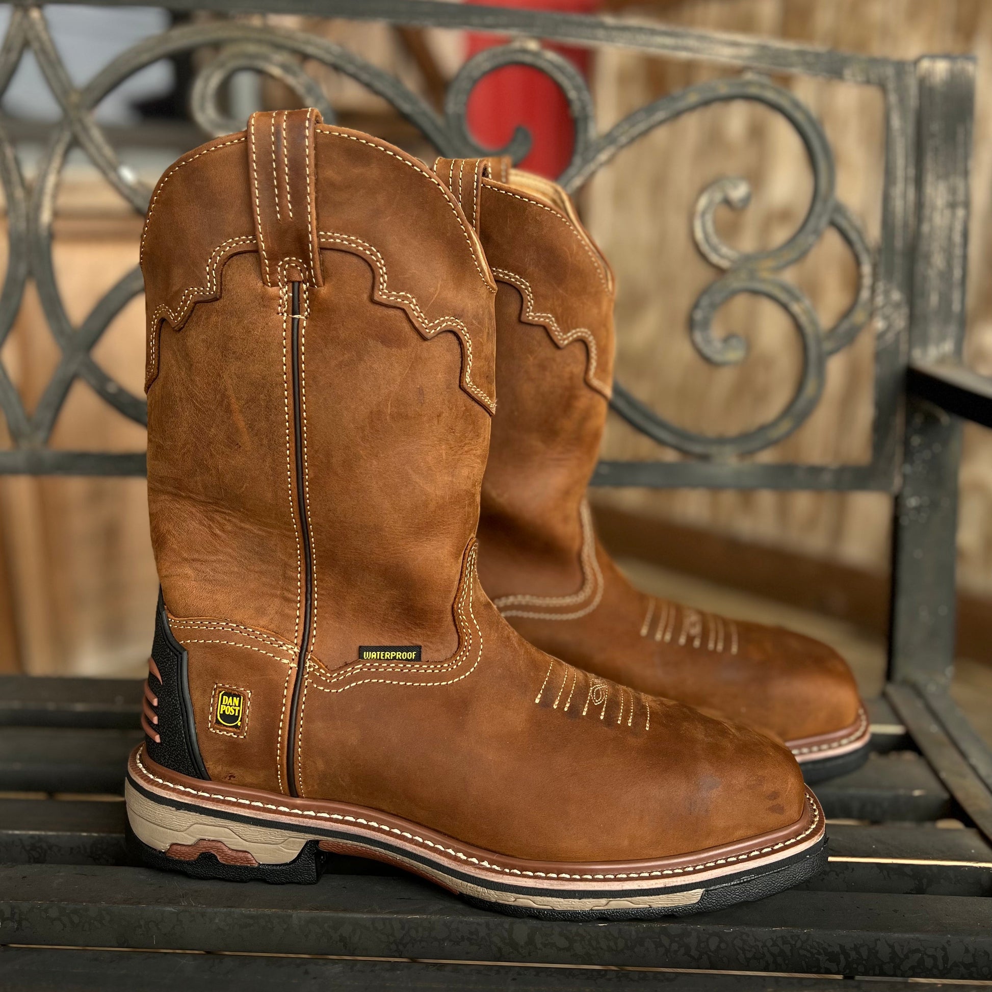 Men's square toe steel toe boot crafted in Saddle Tan by Dan Post.