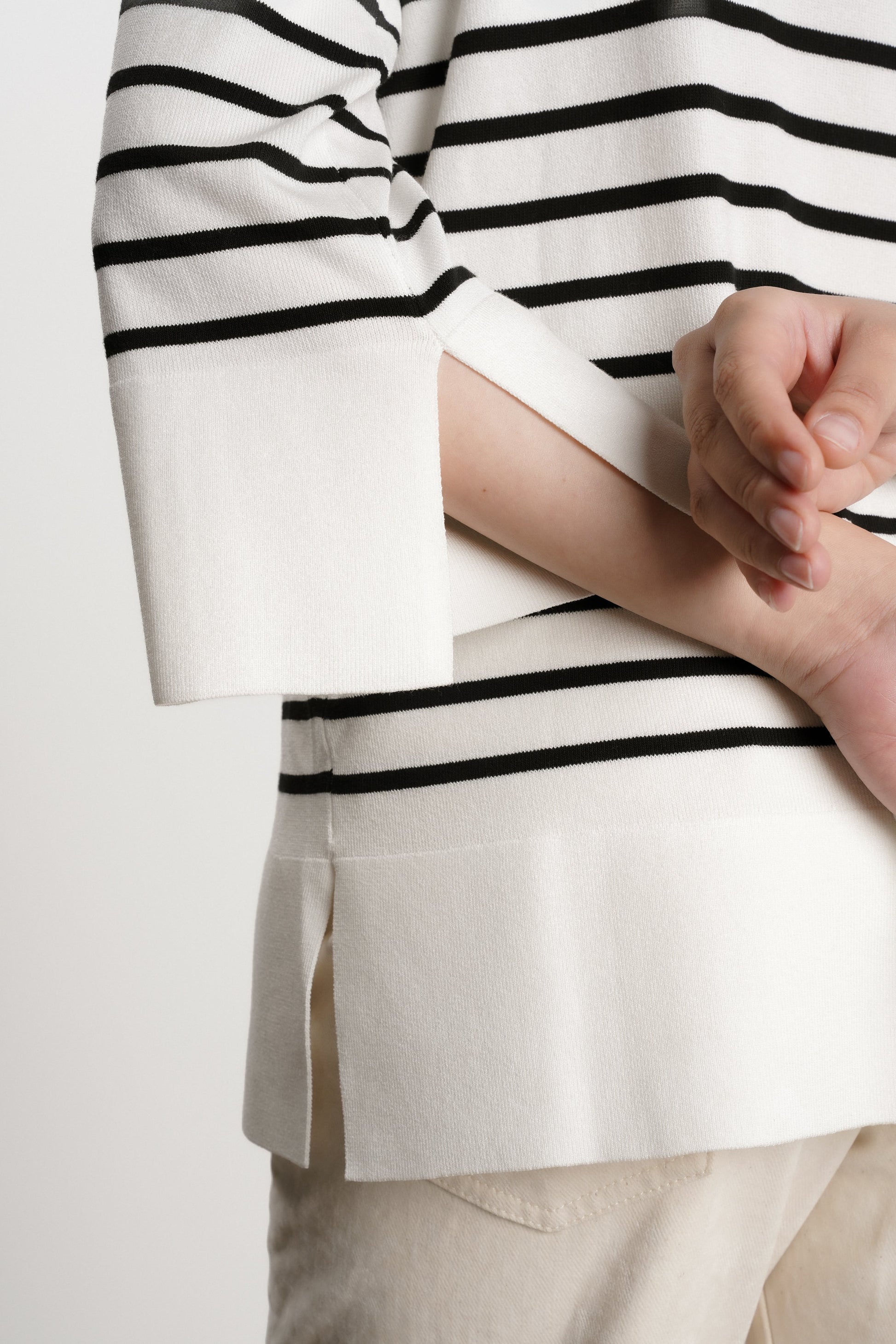 Our favorite sweater of the season, the Suki sweater is right on trend with a knit polo collar, relaxed fit and cut slit details on the sleeves. A perfect throw on and go style for pre and post baby.