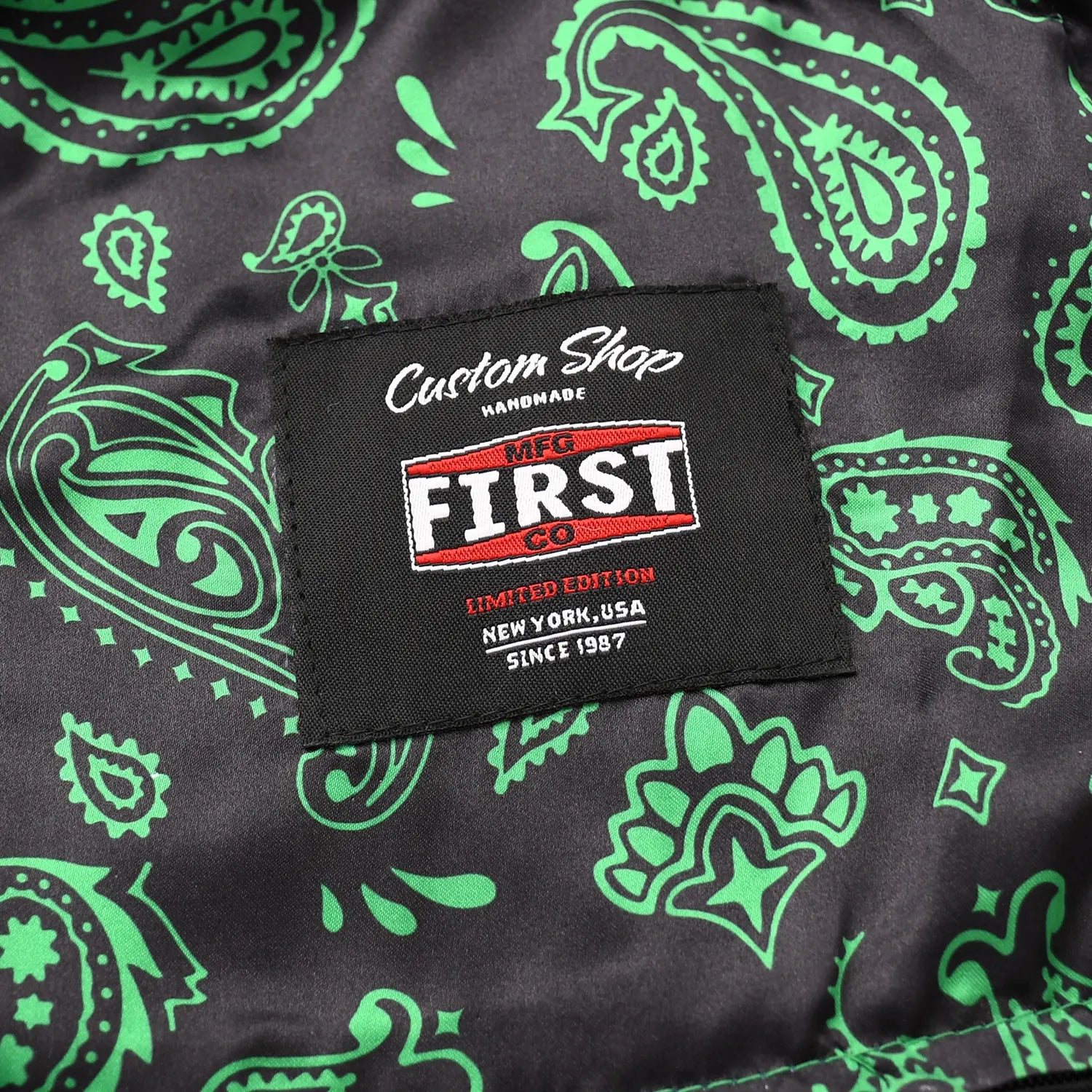 - Satin green paisley printed liner
