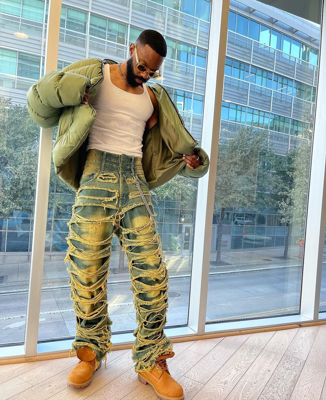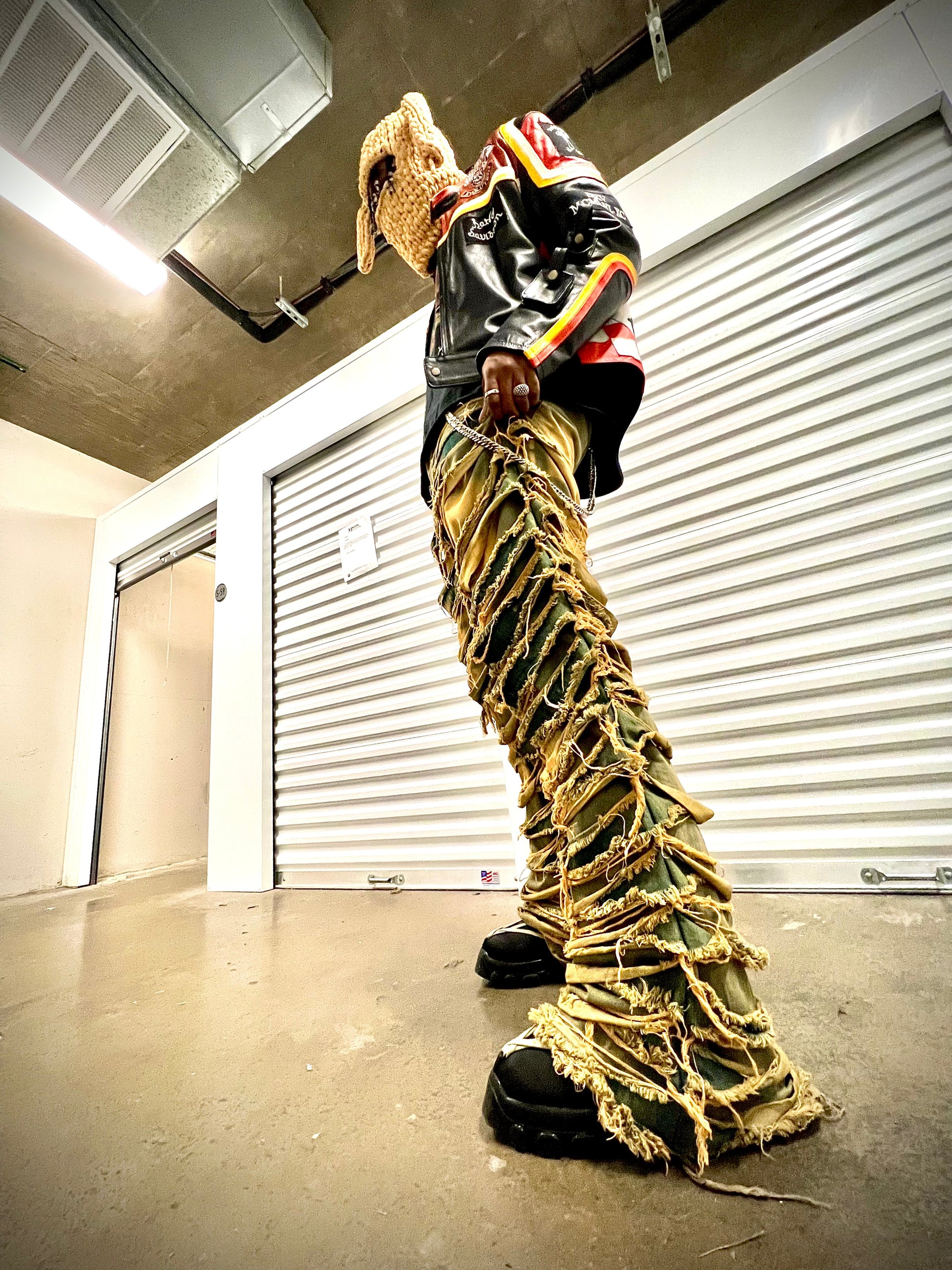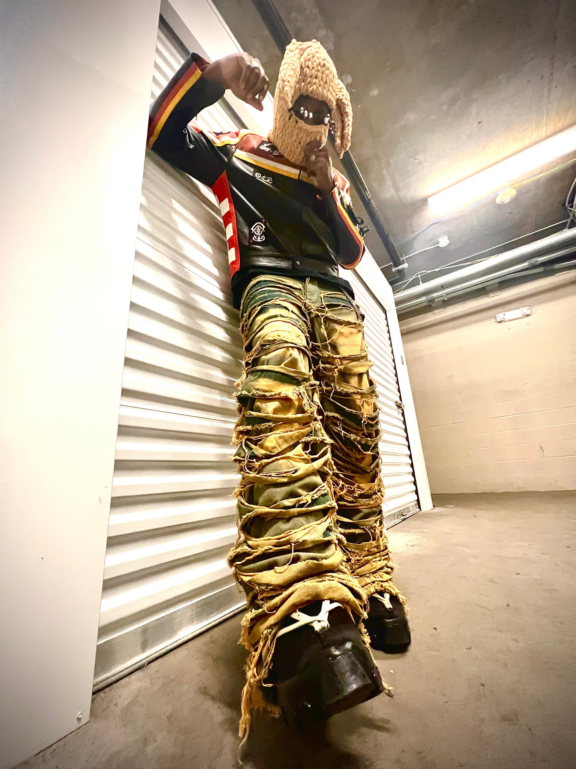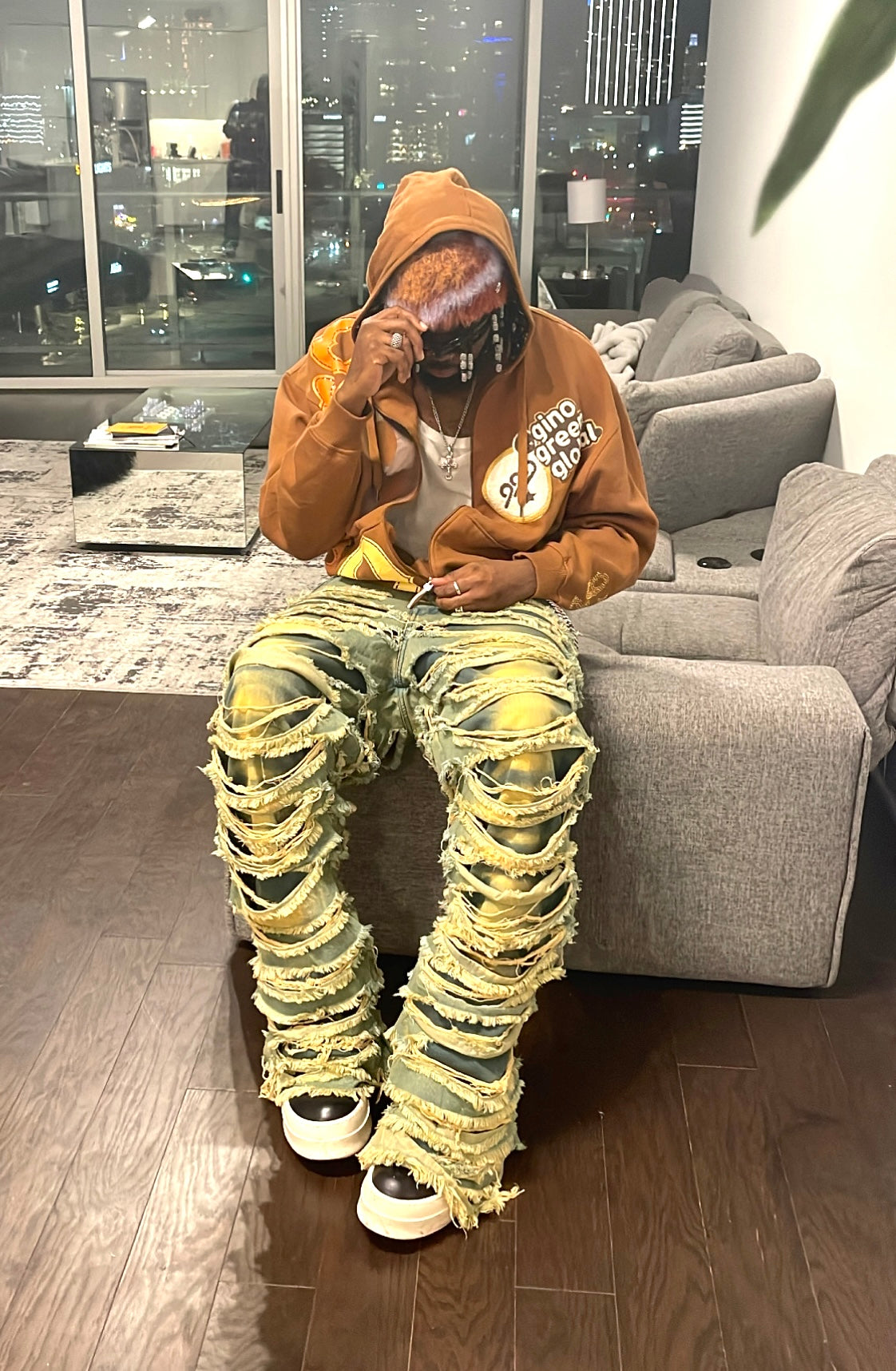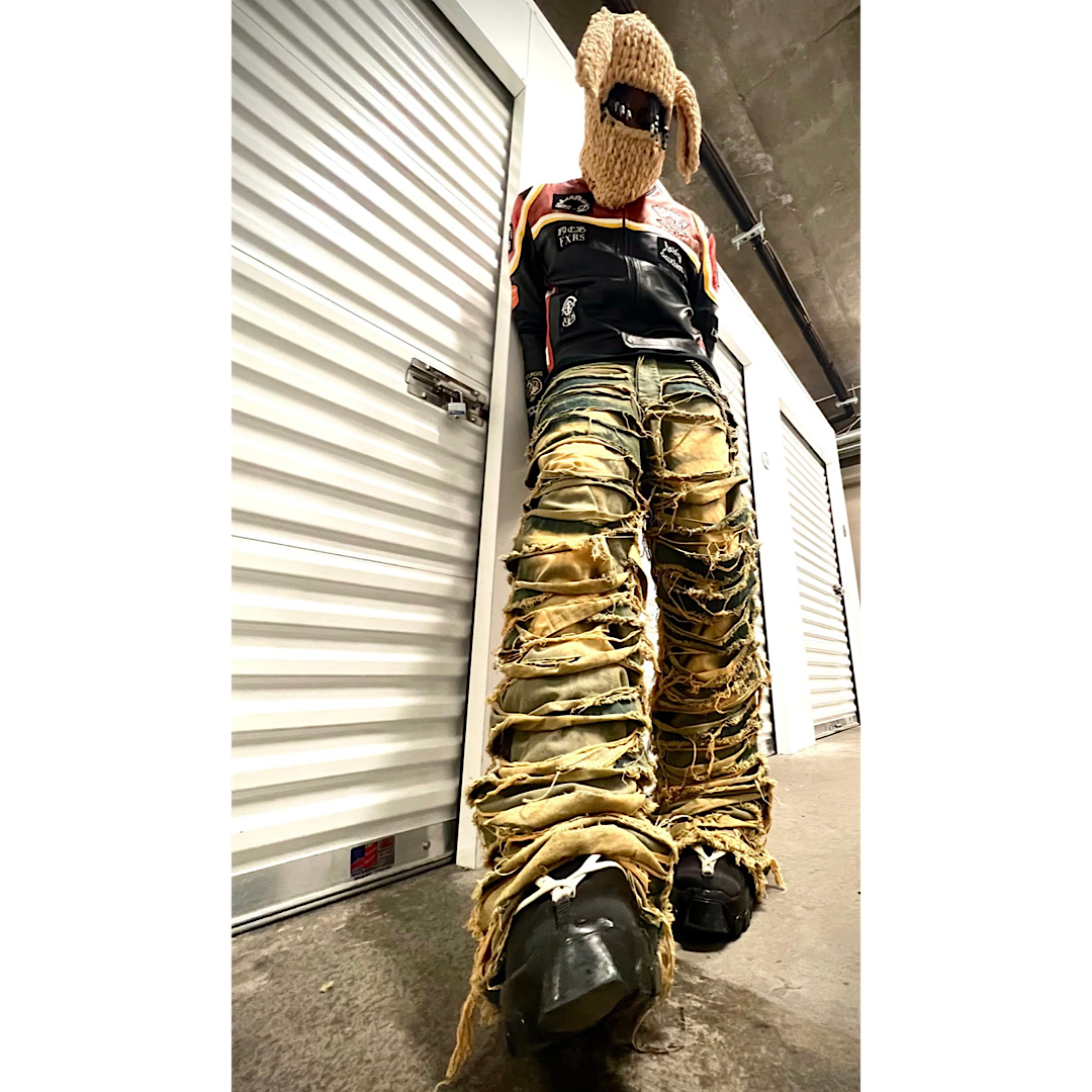 TANNED DOUBLE LAYERED BAGGY DESTROYER DENIM