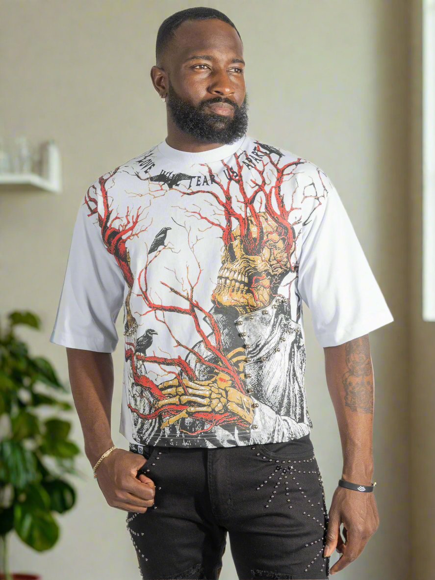 HEARTLESS Crop Graphic Summer Tee – Make a bold statement with this cropped streetwear essential. Crafted from lightweight, breathable cotton, it’s perfect for hot summer days and cool night vibes. The striking HEARTLESS graphic takes center stage, giving your fit an unapologetic edge. Designed with a relaxed, boxy silhouette and raw hem for that effortless street look, it pairs perfectly with high-waisted jeans, shorts, or layered fits.