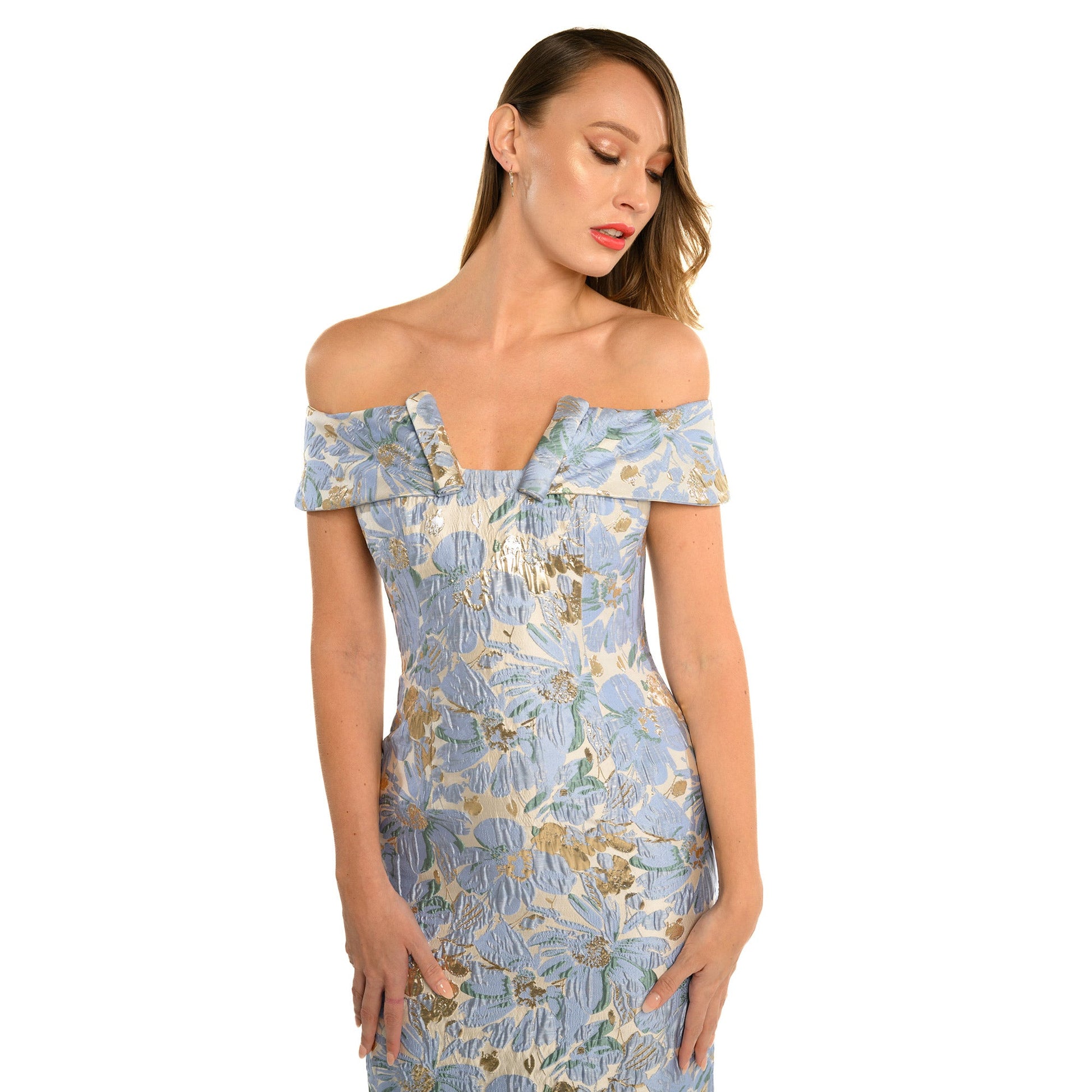 Introducing The Sofia, the ultimate dress for any occasion. This luxurious off the shoulder knee length dress features two delicate colors, perfect for both day and night wear. With Cenia New York's sophisticated and feminine design, you'll always be dressed to impress.
