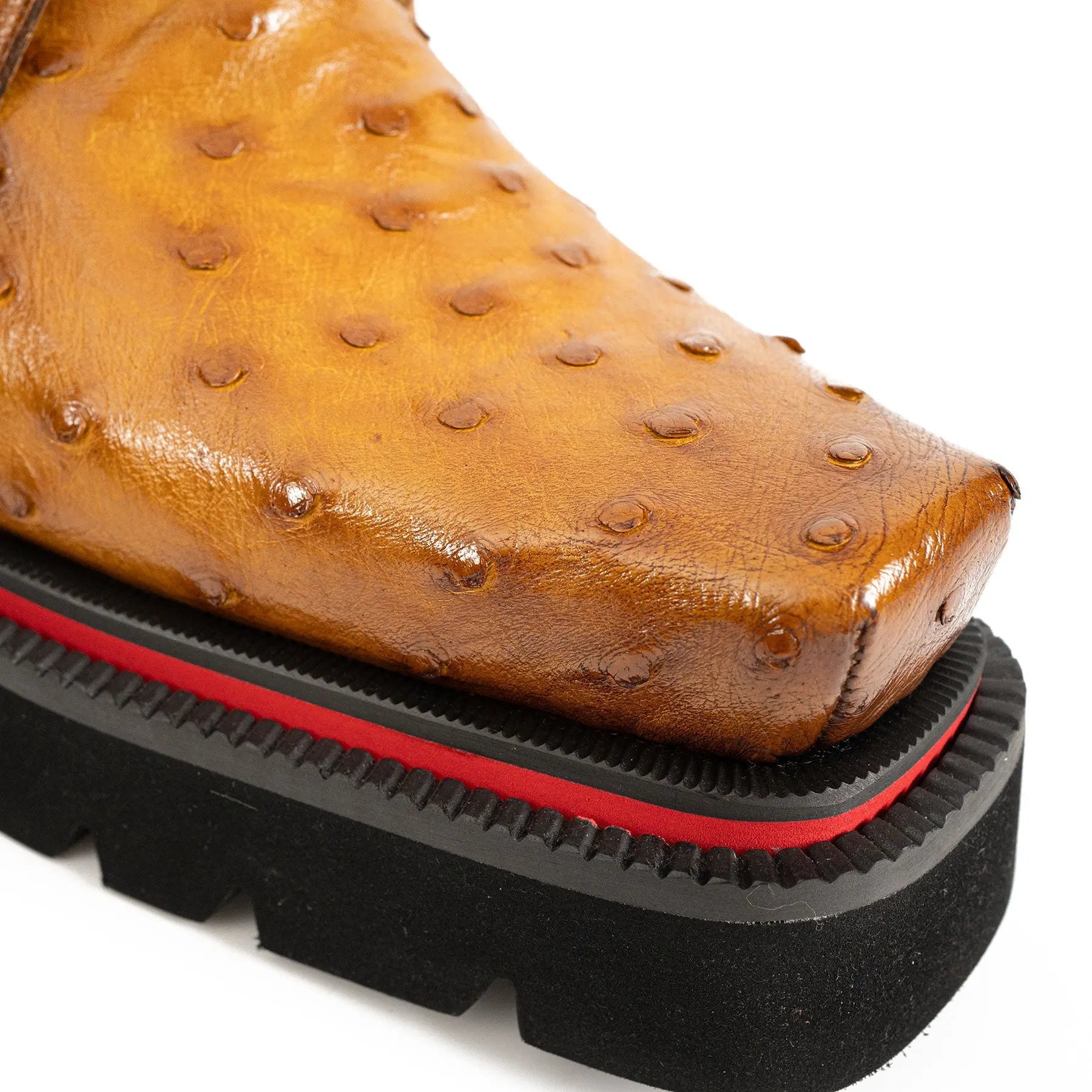 Make a bold statement with these burgundy ostrich-pattern derby shoes, combining classic sophistication with contemporary edge. The rich wine-red upper features an exquisite ostrich-textured leather that adds luxurious depth and visual interest. The square toe design delivers a modern silhouette, while the black laces and elegant tassel provide refined detailing.
