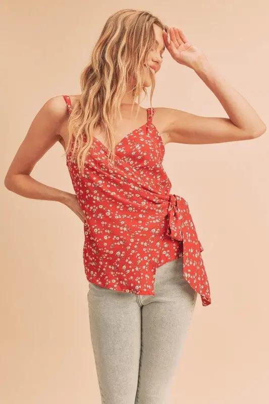 Elevate warm-weather looks with the Aemi + Co Ditsy Floral Camisole. This red cami showcases a delicate ditsy floral print and a flattering surplice neckline. The wrap silhouette creates soft draping, while adjustable straps let you tailor the fit for comfort through the day. A discreet side tie finishes the design with a refined touch.