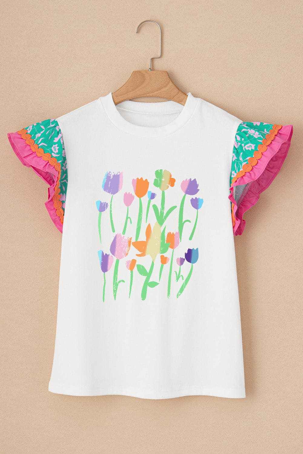 Trendsi Chic Ruffled Blouse — Cap Sleeves