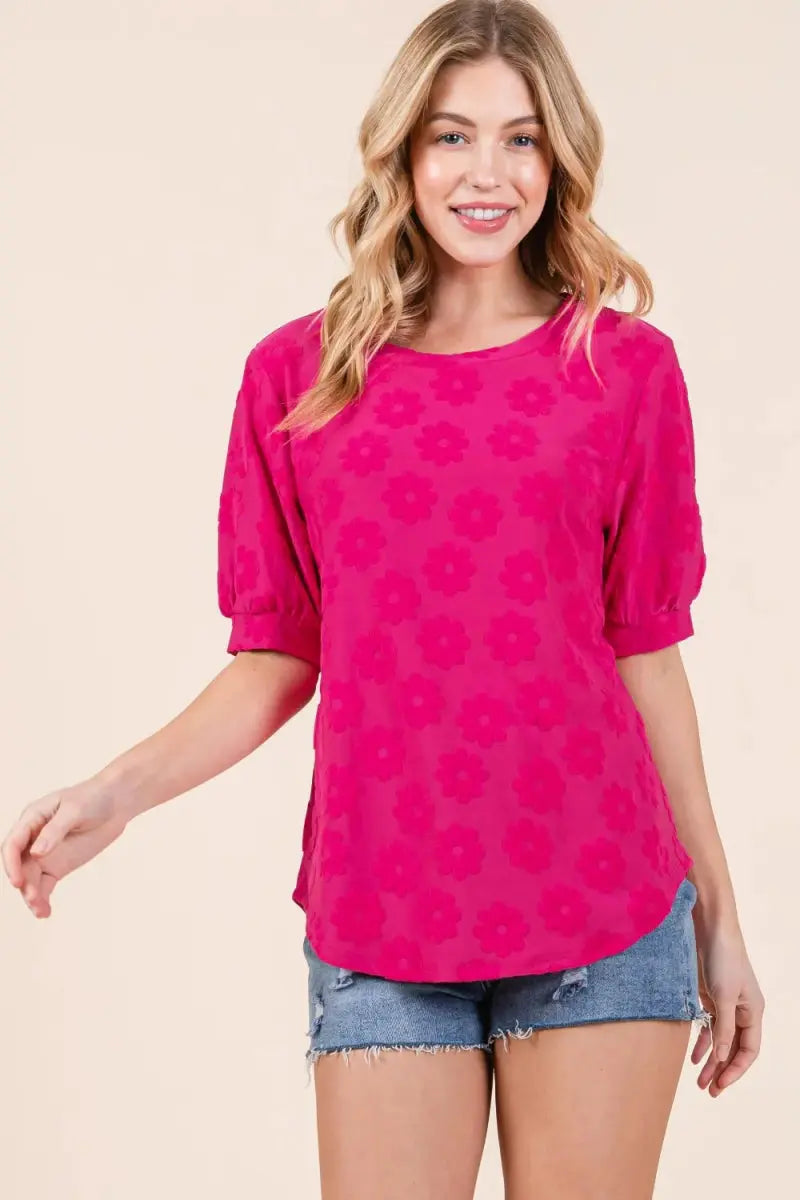 BOMBOM Textured Floral Pattern Top for Elegant Style