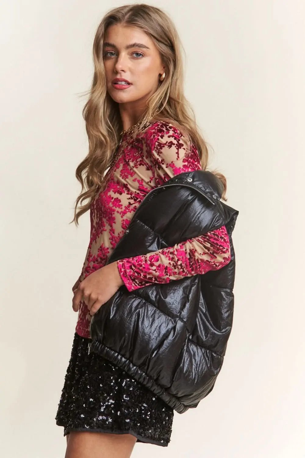 Combining warmth, comfort, and a contemporary metallic sheen, the J.NNA Metallic Puffer Vest is designed for transitional days. The lightweight insulation delivers reliable warmth without bulk, making it ideal for layering over blouses, knits, or tees.