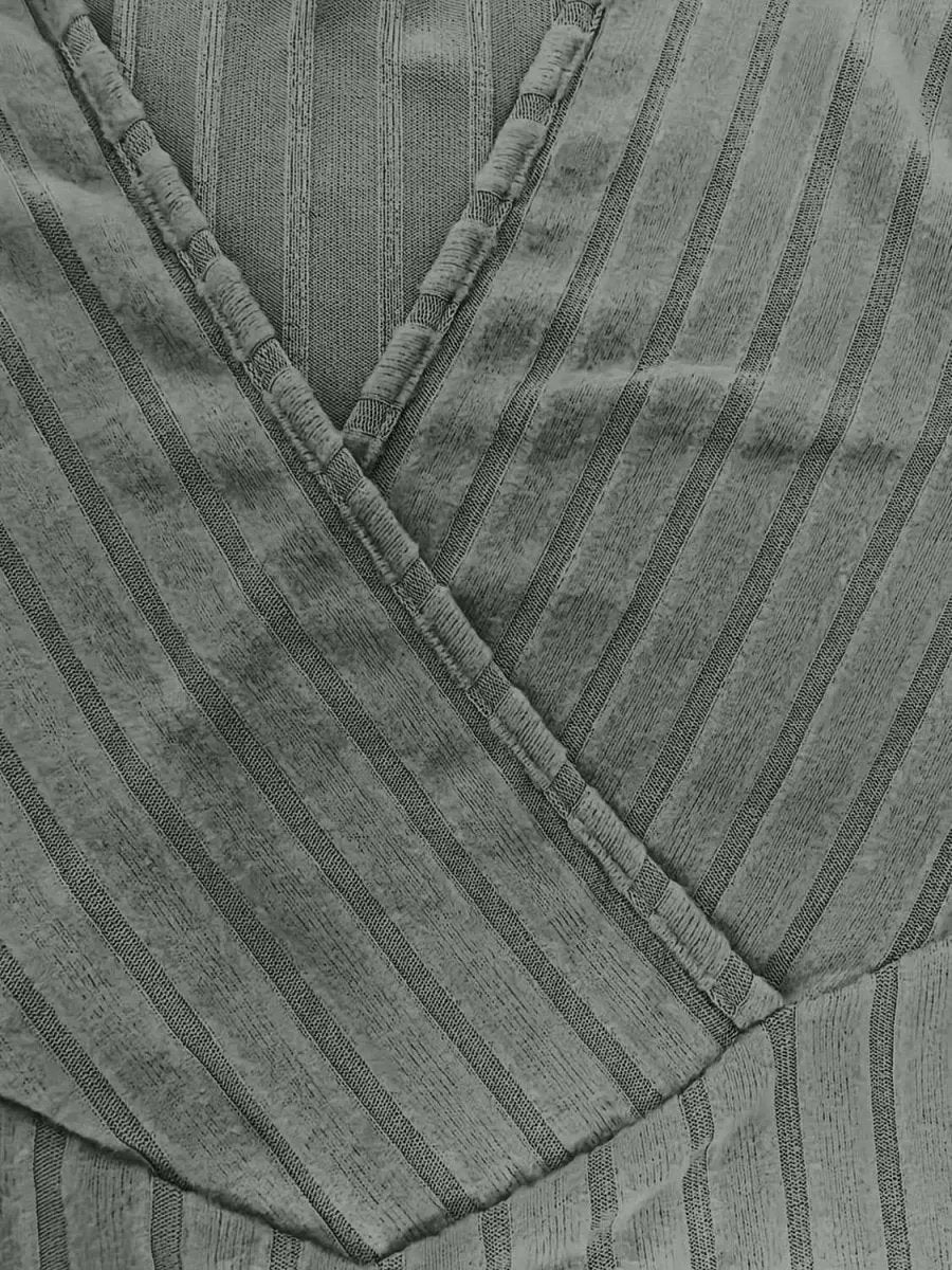- Finish: opaque ribbed knit with a wrapped surplice neckline