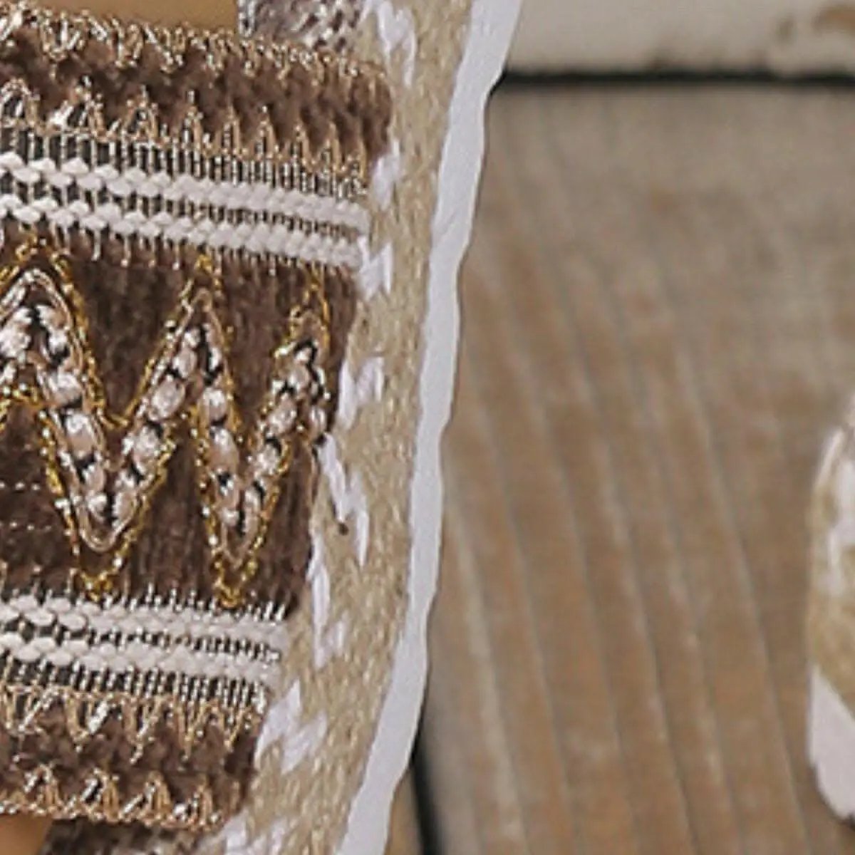 - Strap detailing: woven two‑tone pattern