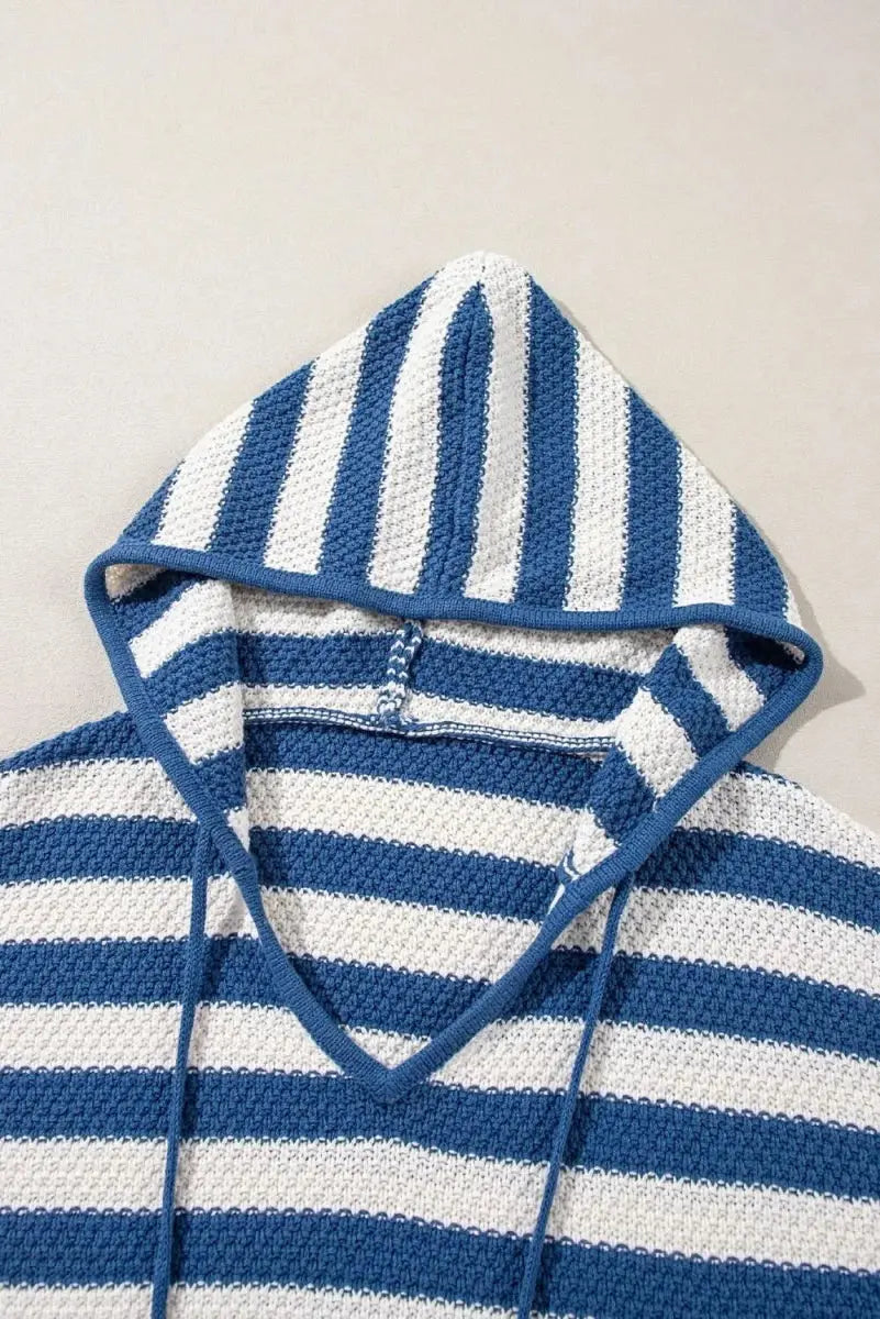 Drawstring Striped Long Sleeve Hooded Sweater