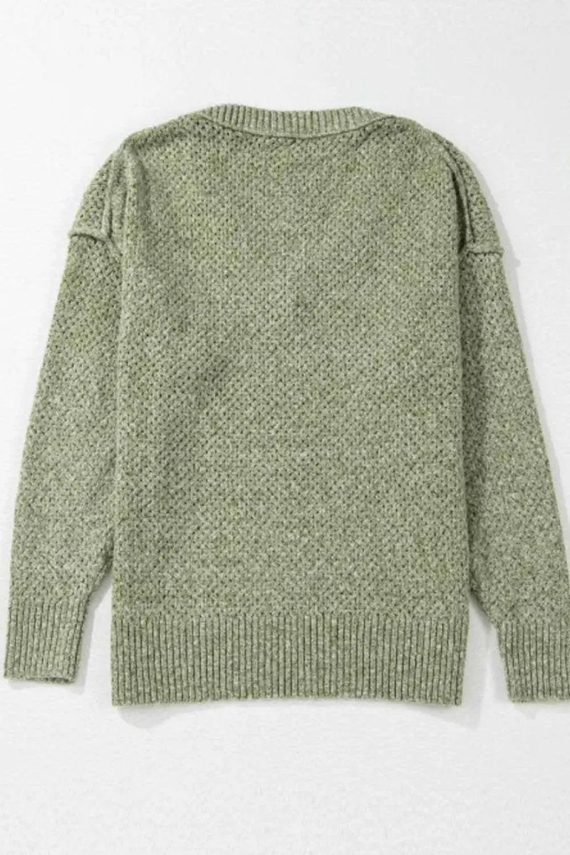 V-Neck Dropped Shoulder Long Sleeve Sweater