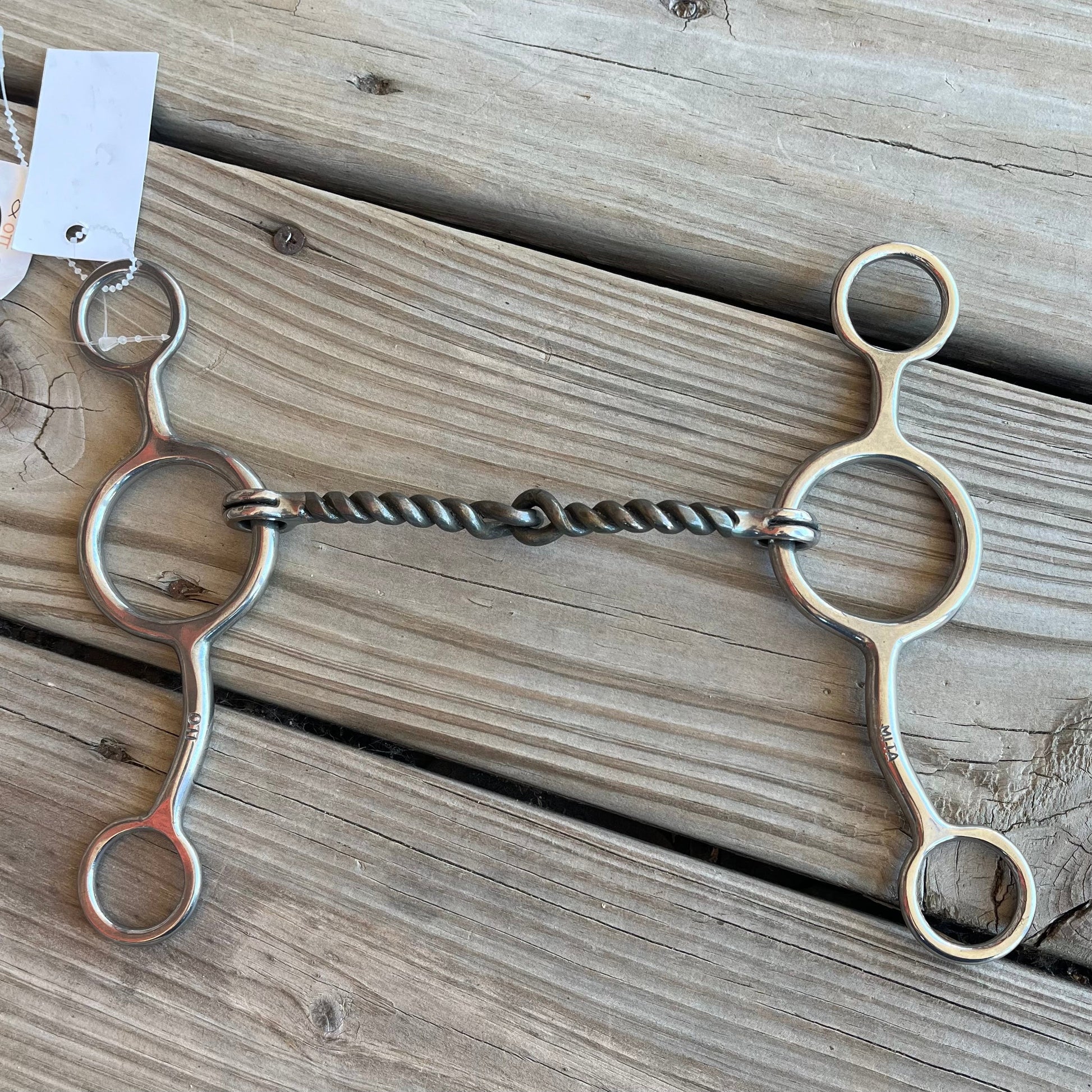 Made in the USA. Stainless steel gag bit with a twisted mouthpiece.