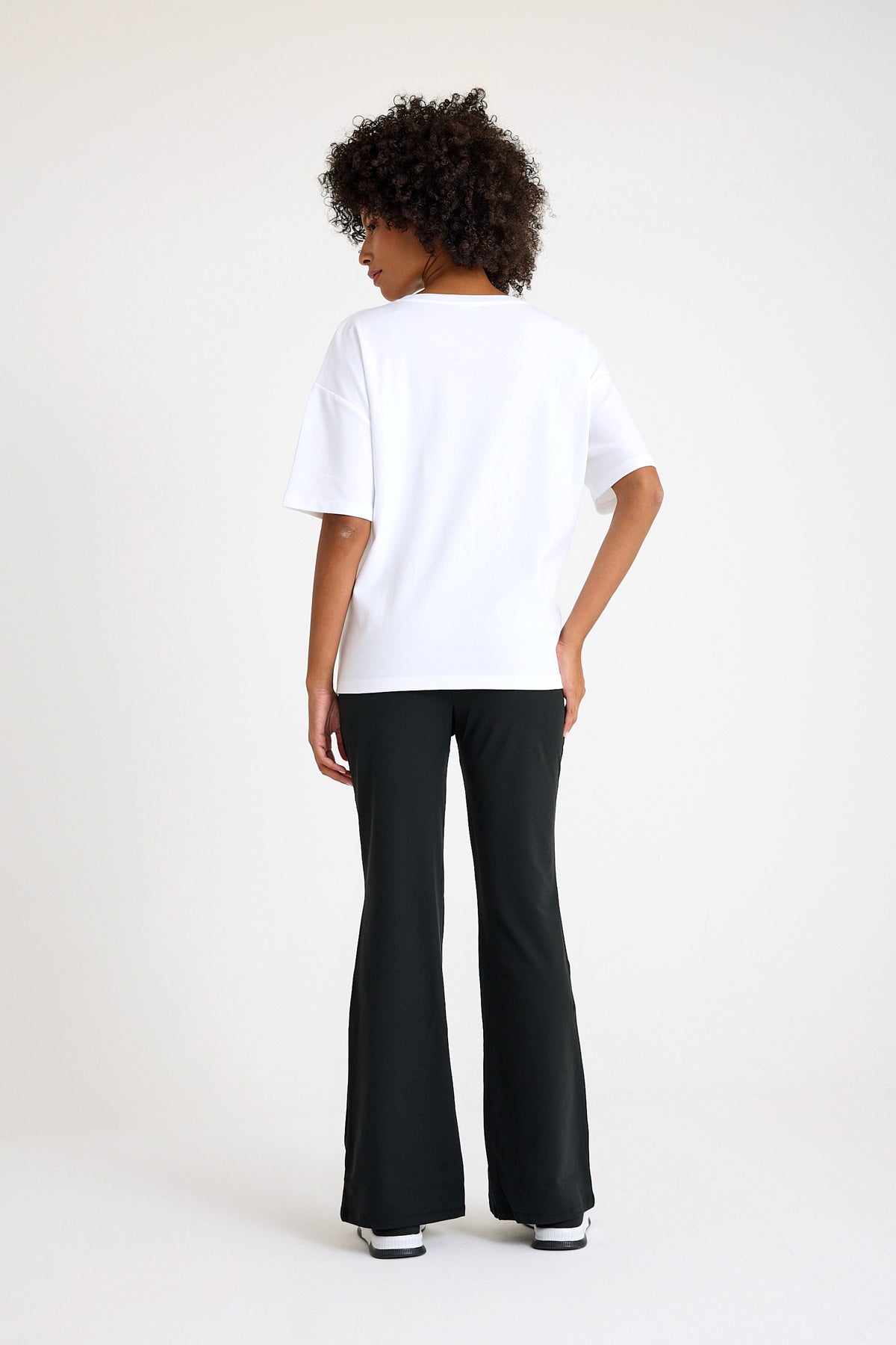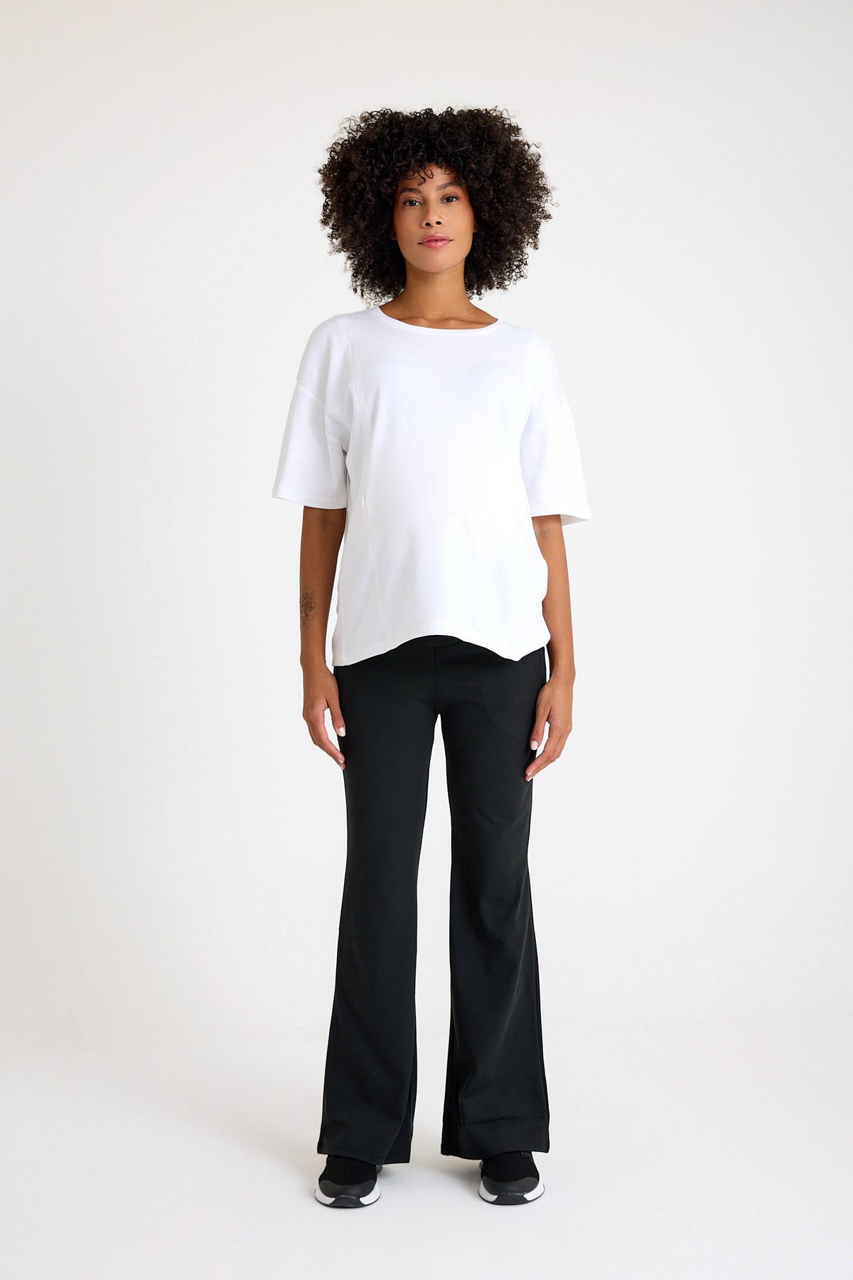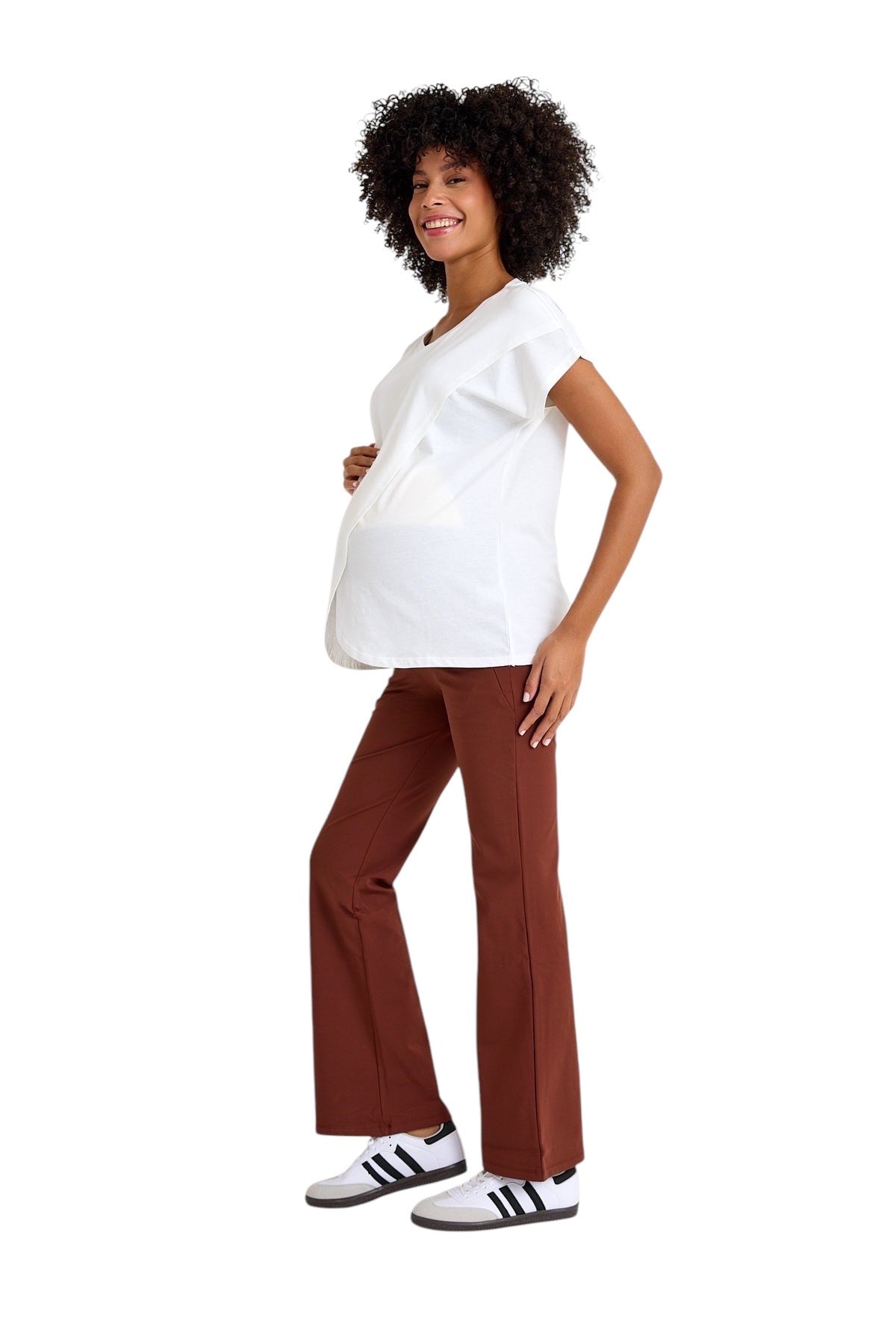 Warm flare maternity trousers with warm inner texture. Zippered front pockets and high waist. Very durable and breathable fabric.