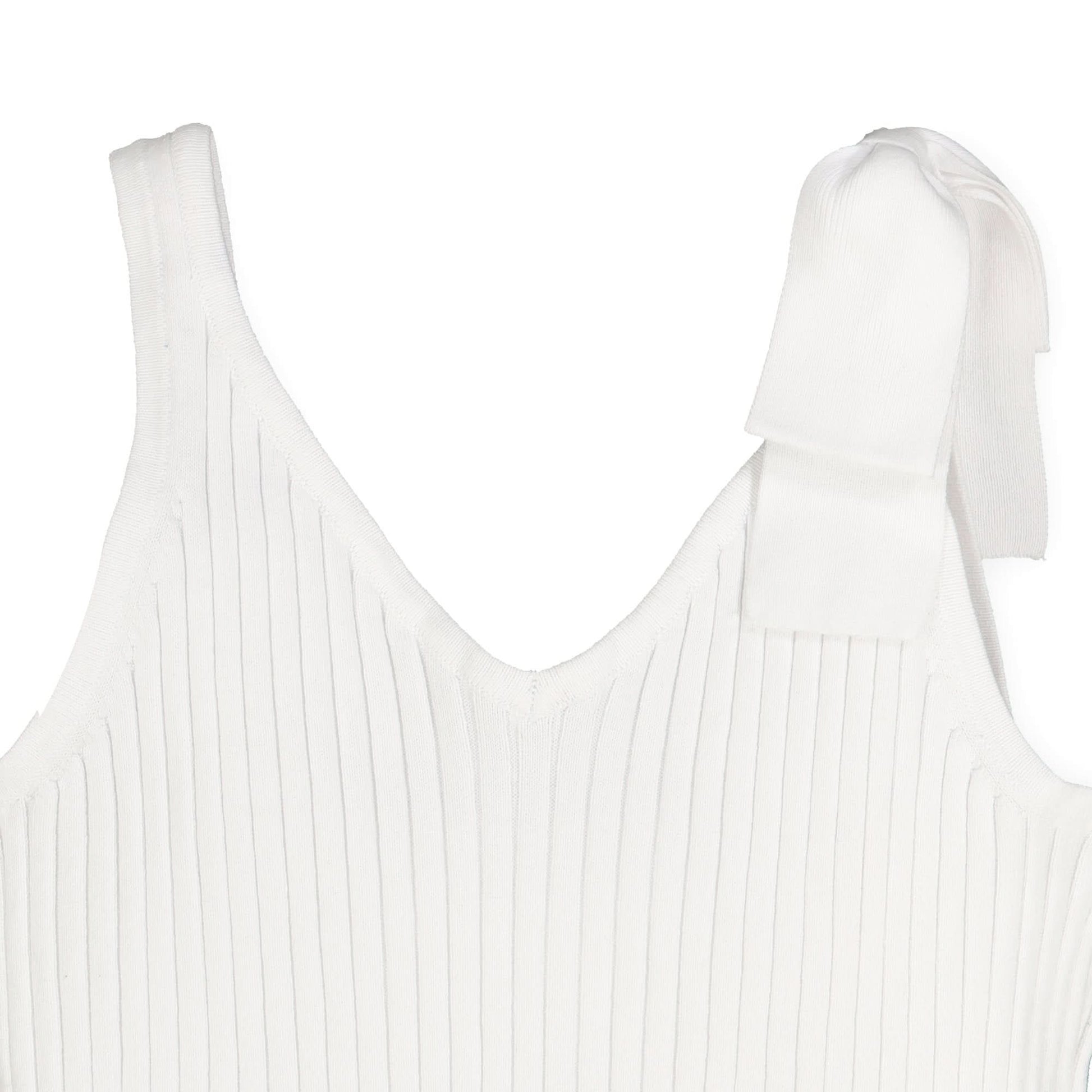 A springtime staple, this stretchy and slim rib knit sweater tank has a flattering v-neck and wide straps (great for hiding any other straps). Features a playful and pretty knit bow at the shoulder for that feminine touch. Pairs perfectly with our linen shorts for the ultimate spring or summer look.
