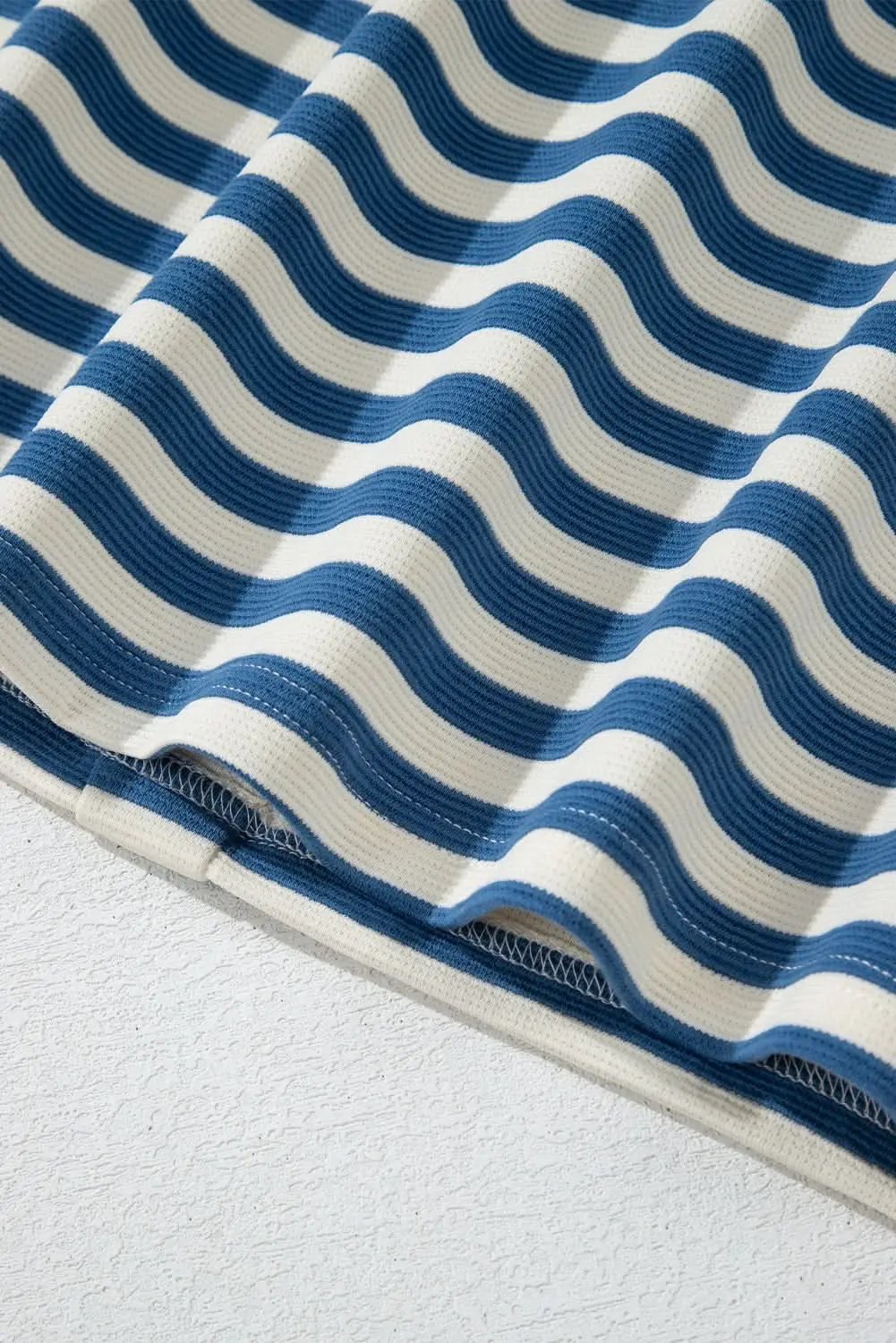 This versatile V-neck top pairs wonderfully with your favorite jeans, shorts, or skirts, making it an essential piece for creating countless stylish ensembles. Whether you're heading to a brunch, running errands, or enjoying a leisurely stroll, the Love Salve Sky Blue Striped V-Neck Top promises comfort, style, and a touch of serene elegance.