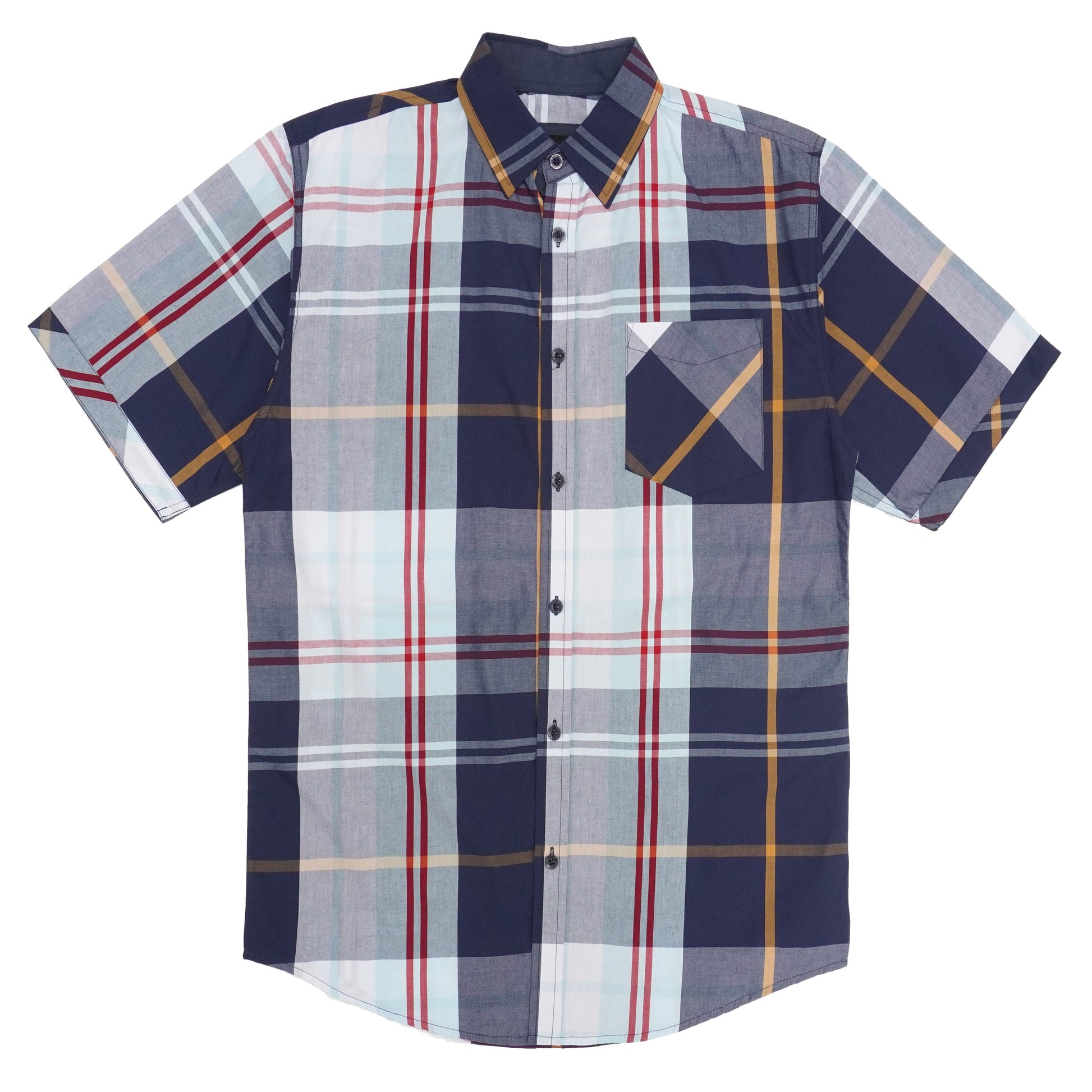 V845 Veno Button-Down Plaid Short Sleeves - Navy