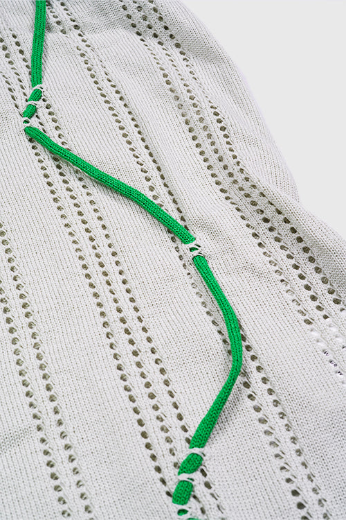 - The green line is a rope material that is weaving in and out of the fabric