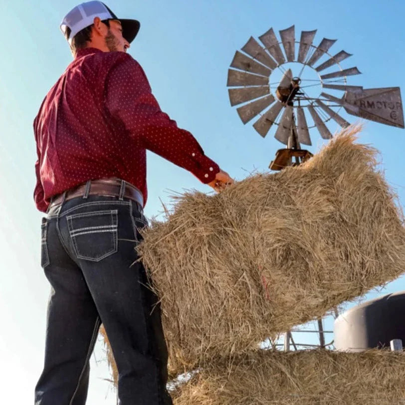 Men's Cinch white label dark stonewash relaxed fit boot cut.