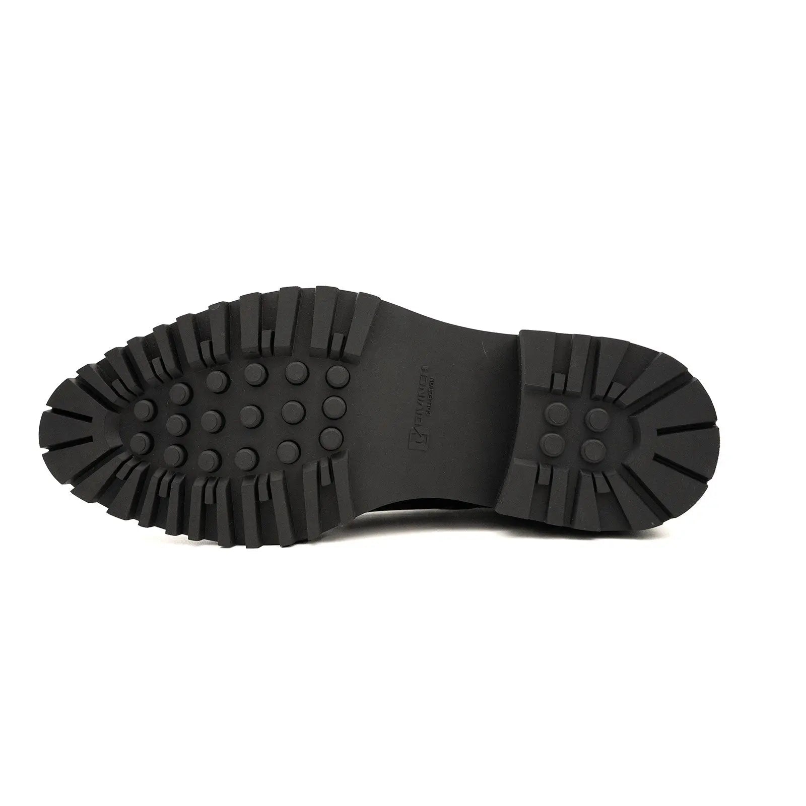 The silhouette is anchored by a dramatically sculpted chunky lug sole—a modern icon of footwear design. This substantial platform sole does more than look exceptional; it is a feature of supreme confidence. It instantly provides a few inches of height, giving you a powerful, commanding posture, while the utilitarian tread ensures outstanding grip and stability across city streets and uneven terrains. This sole unit perfectly balances the sleek, polished upper with a durable, grounded foundation, ensuring that your steps are as bold as your look.
