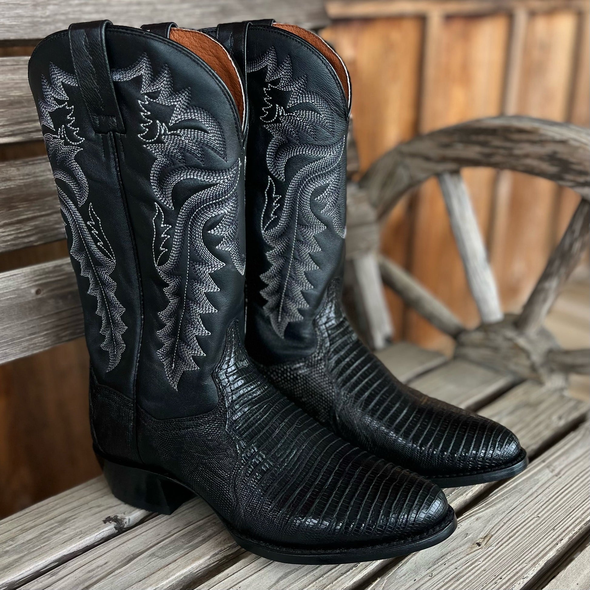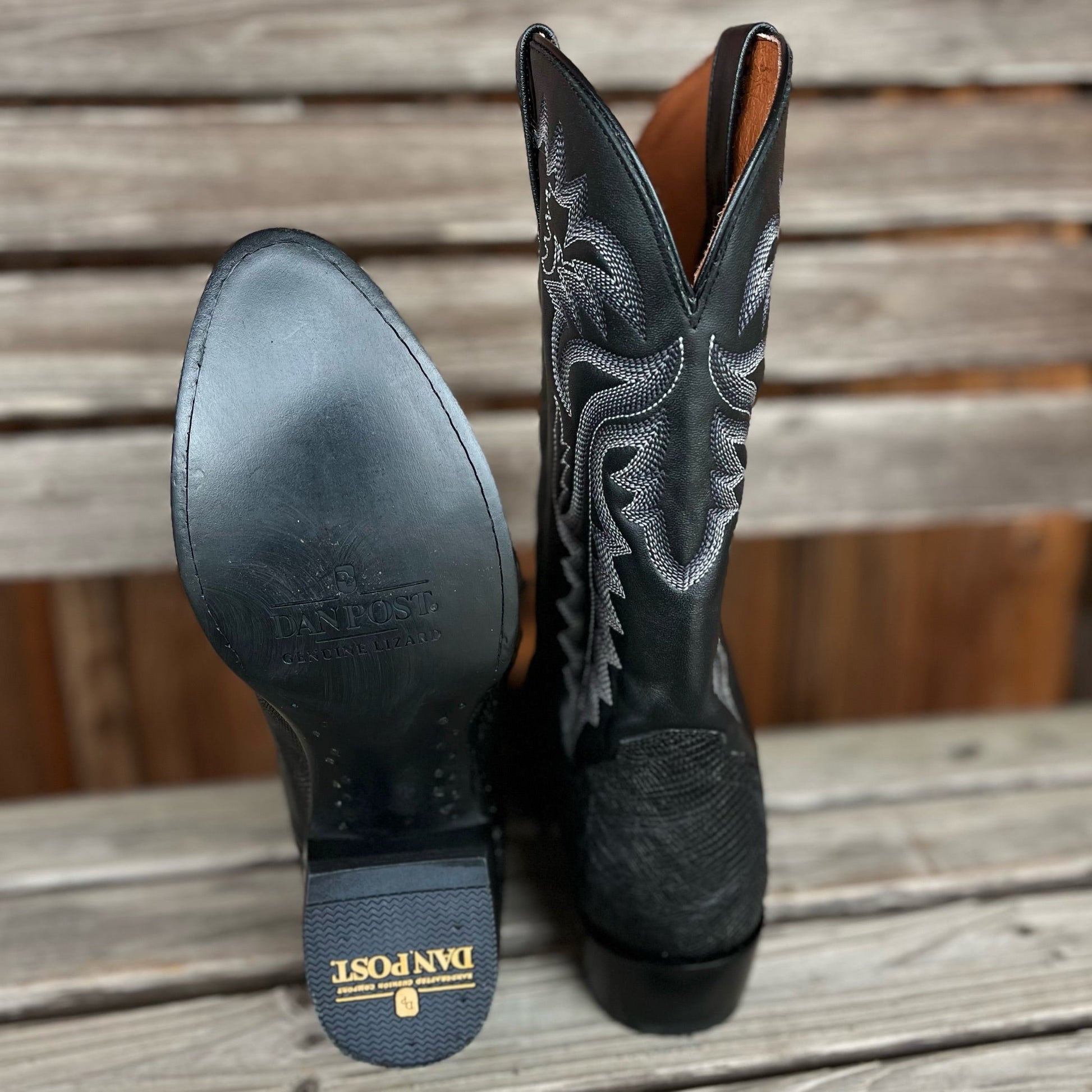 Men's Dan Post Winston black lizard round toe boot leather sole
